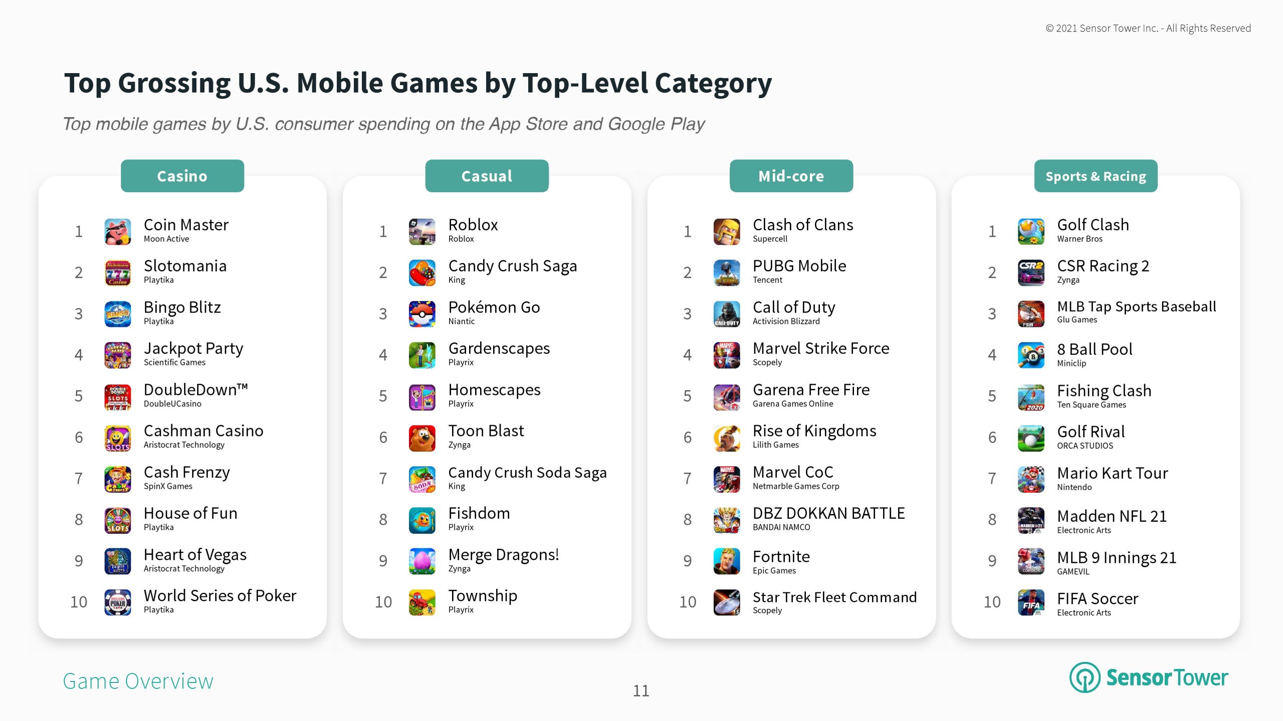 3、超休闲、桌面和车辆类游戏连续第二年成为下载最高的主题。新的艺术主题游戏在2020年也取得了成功,同时今年累计下载量6.32亿次,显示出2021年的增长潜力。