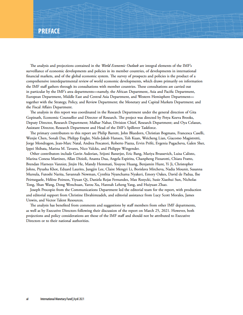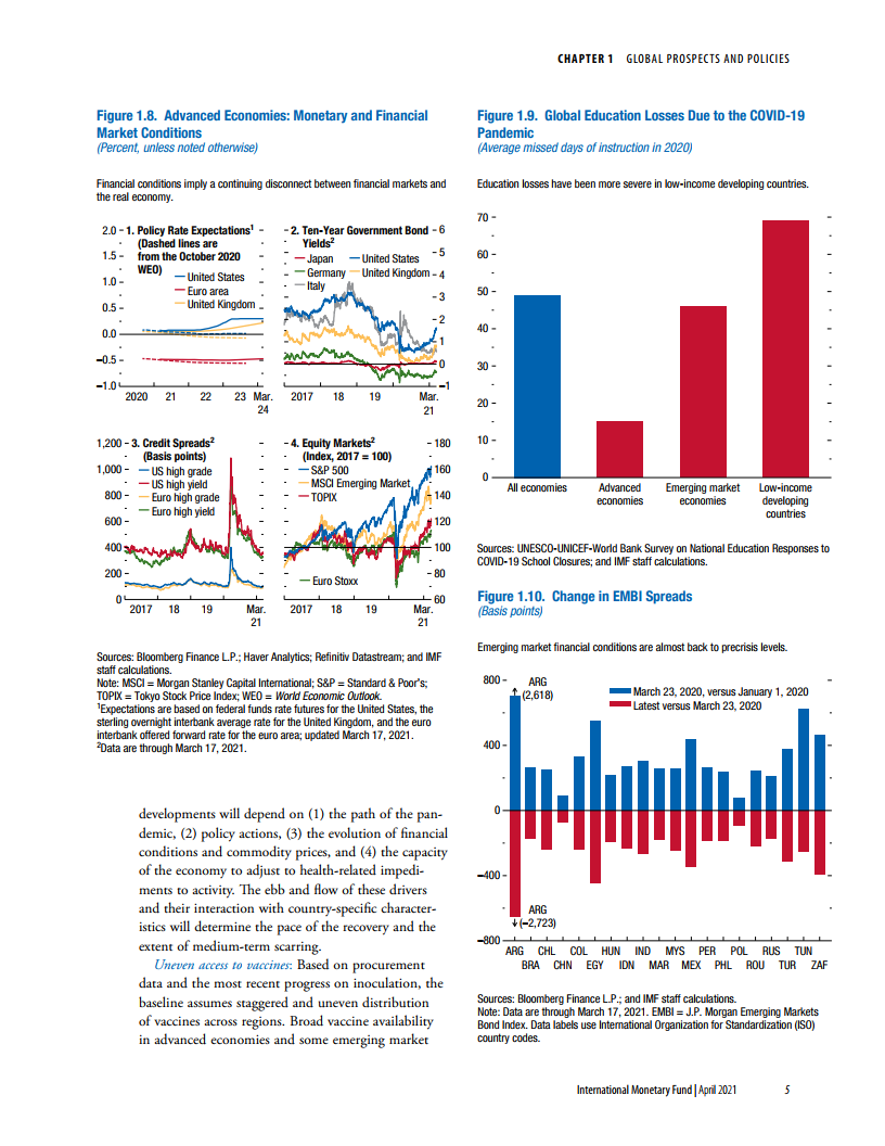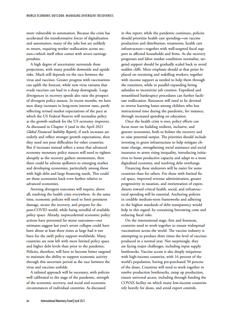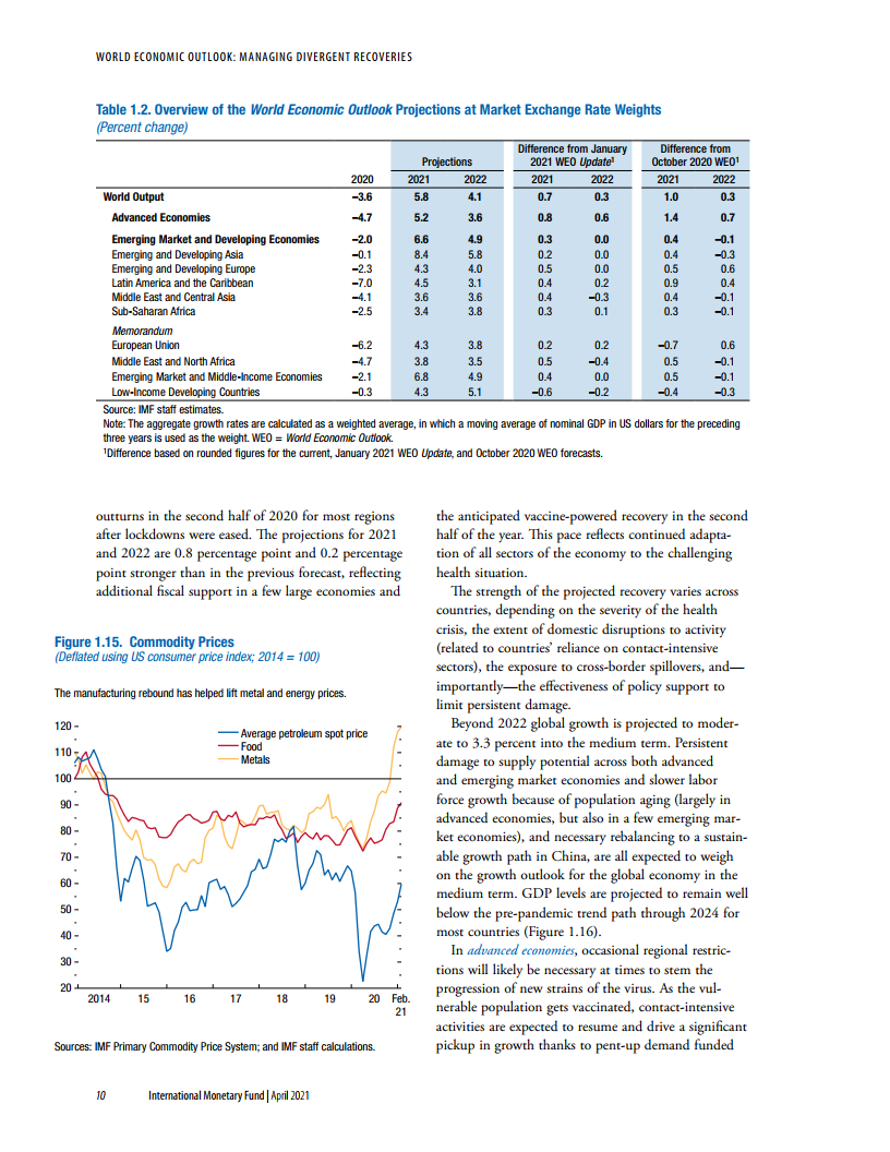 预测值的上调反映了以下因素:少数大型经济体推出了更多财政支持,2021年下半年预计出现疫苗驱动的经济复苏,以及经济活动持续对人员流动下降做出调整和适应。经济前景存在巨大的不确定性,这与新冠疫情的未来发展路径、政策支持帮助实现疫苗驱动复苏的效果以及融资环境的变化情况有关。