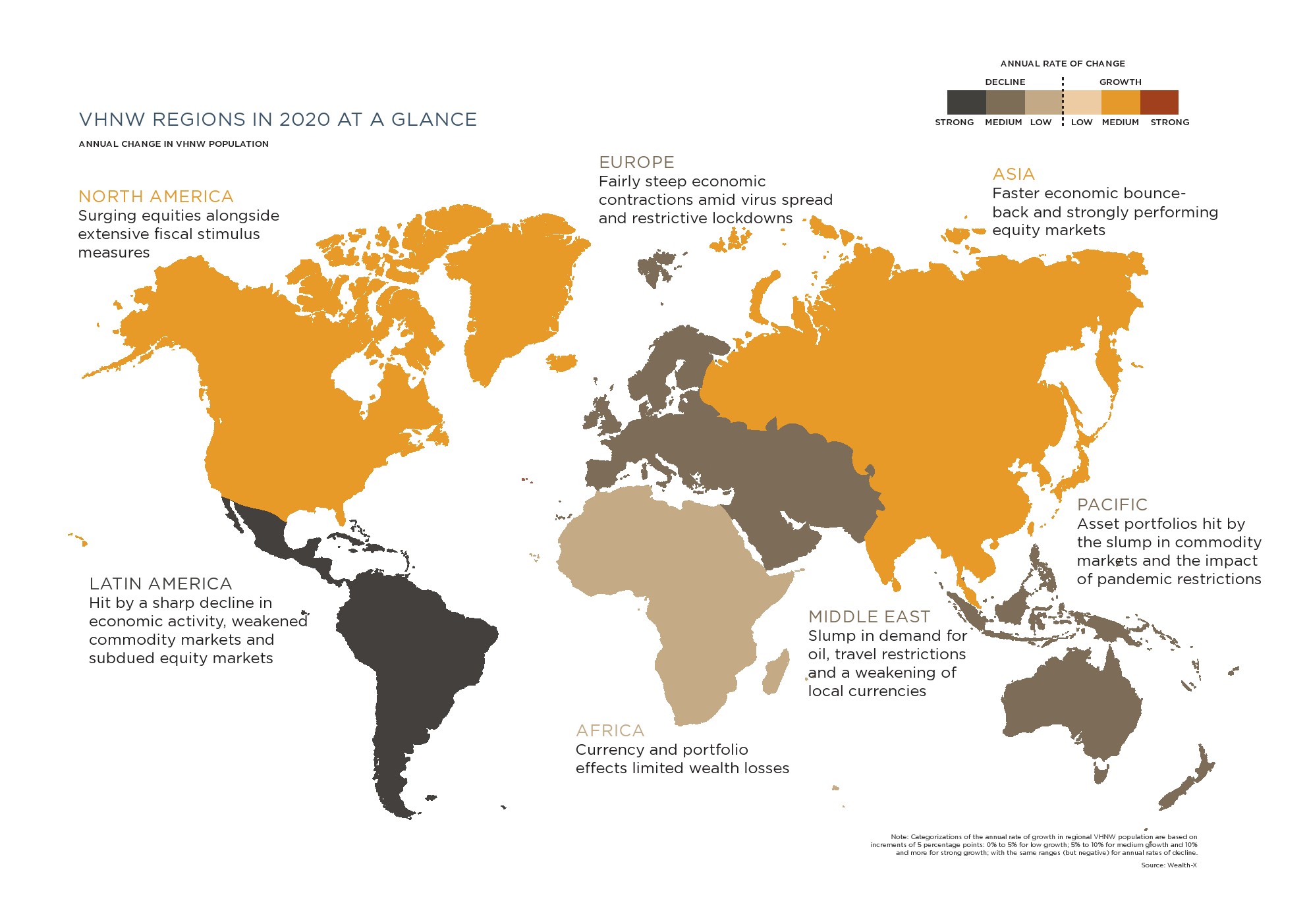 Wealth-X发布了“2021年超高净值报告”,分析了世界上超高净值(VHNW)人口(净资产在500-3000万美元之间)的状况。全球超高净值人口在2020年增长了1.3%,达到270万人。此外,VHNW人口的综合净值也增长了1.2%,达到26.8万亿美元。