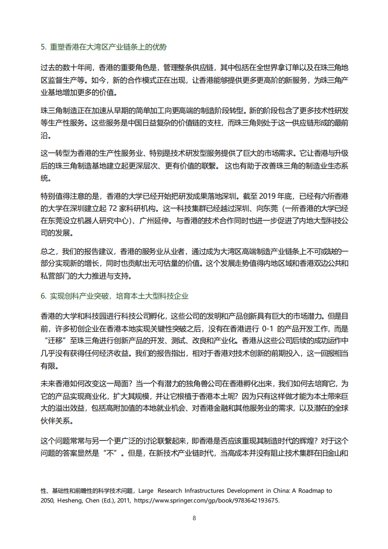由此可见,香港可以扮演大湾区城市群产业链中的战略性资源—资金和货币分配的角色,成为海内外资金融通的重要环节。