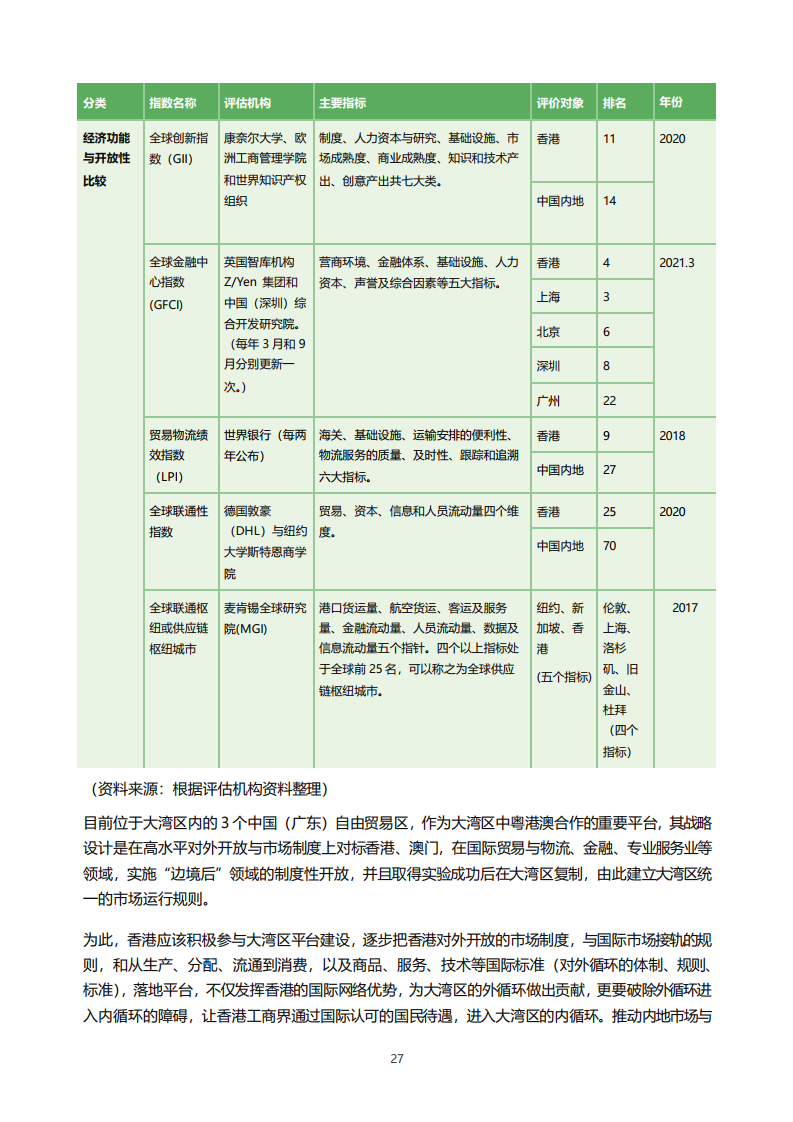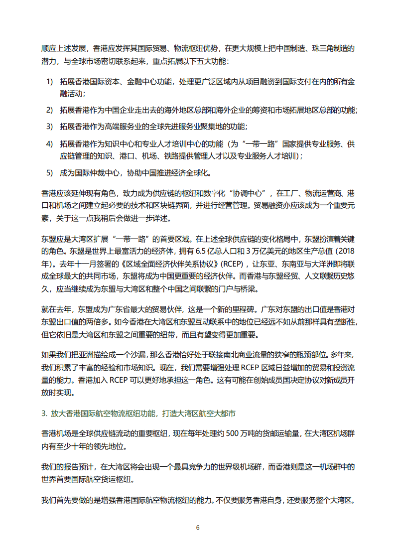 目前香港作为粤港澳大湾区内与全球经济连结的重要一环,香港是这个城市群全球价值链管理的组成部分,主要体现在两个方面: