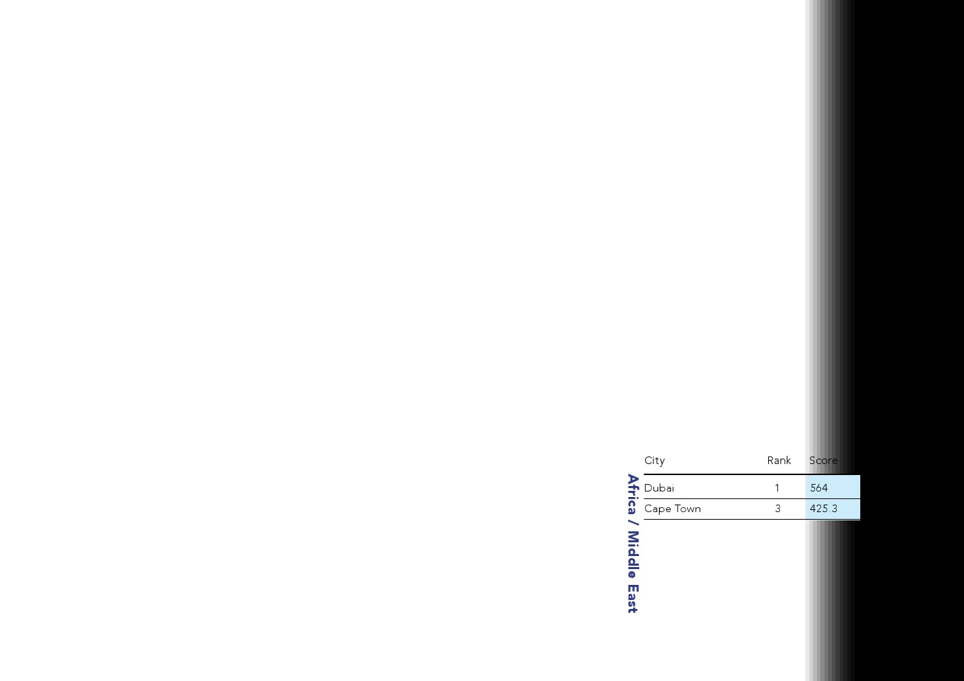 今年的报告重点关注不同的地区和一些特定的城市,这些城市被突出显示为值得关注的城市。