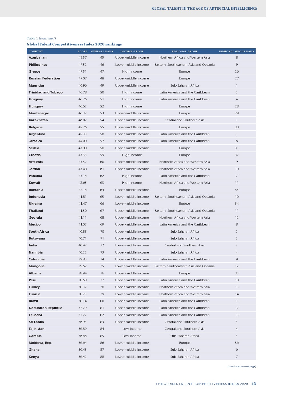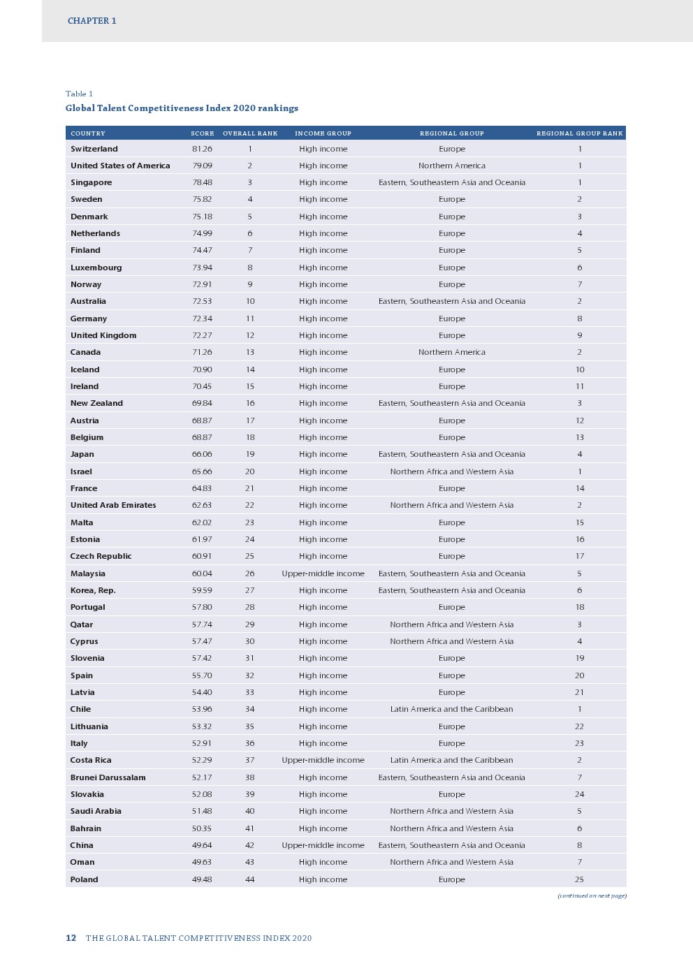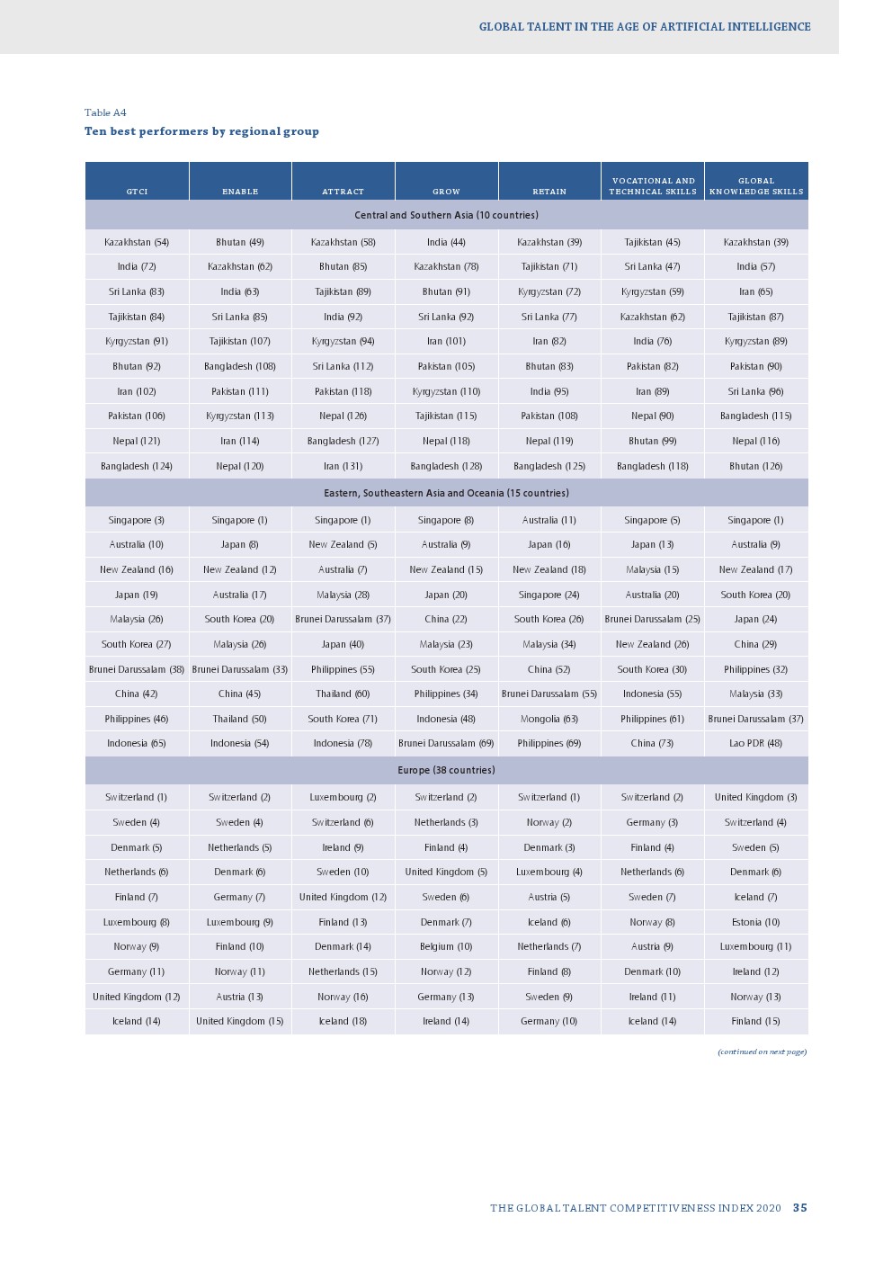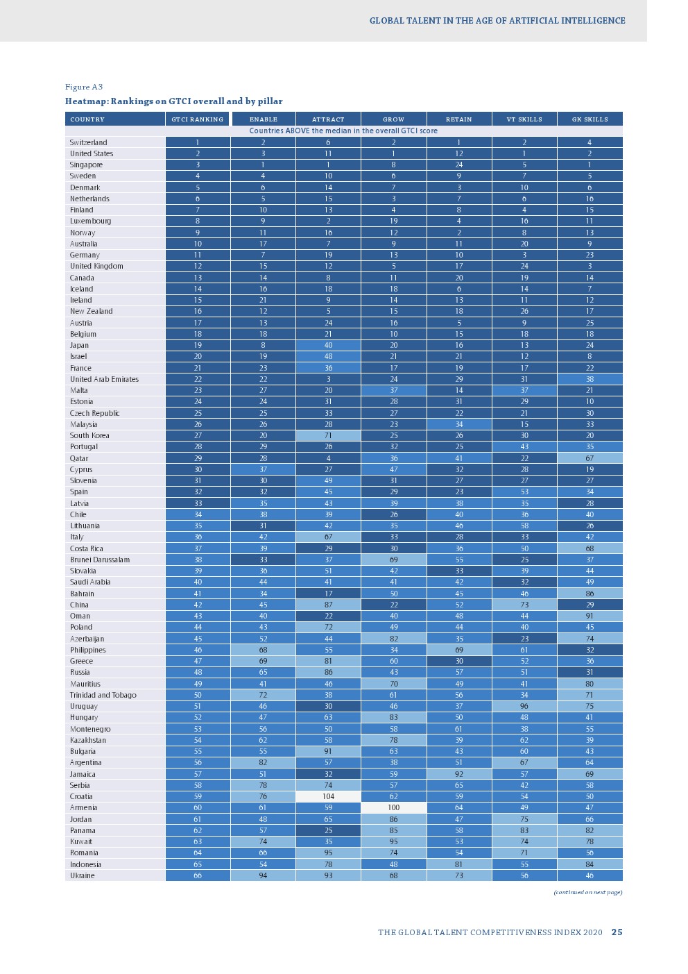 GTCI 发布了“2020年全球人才竞争力指数”,分析了人工智能时代全球人才趋势。