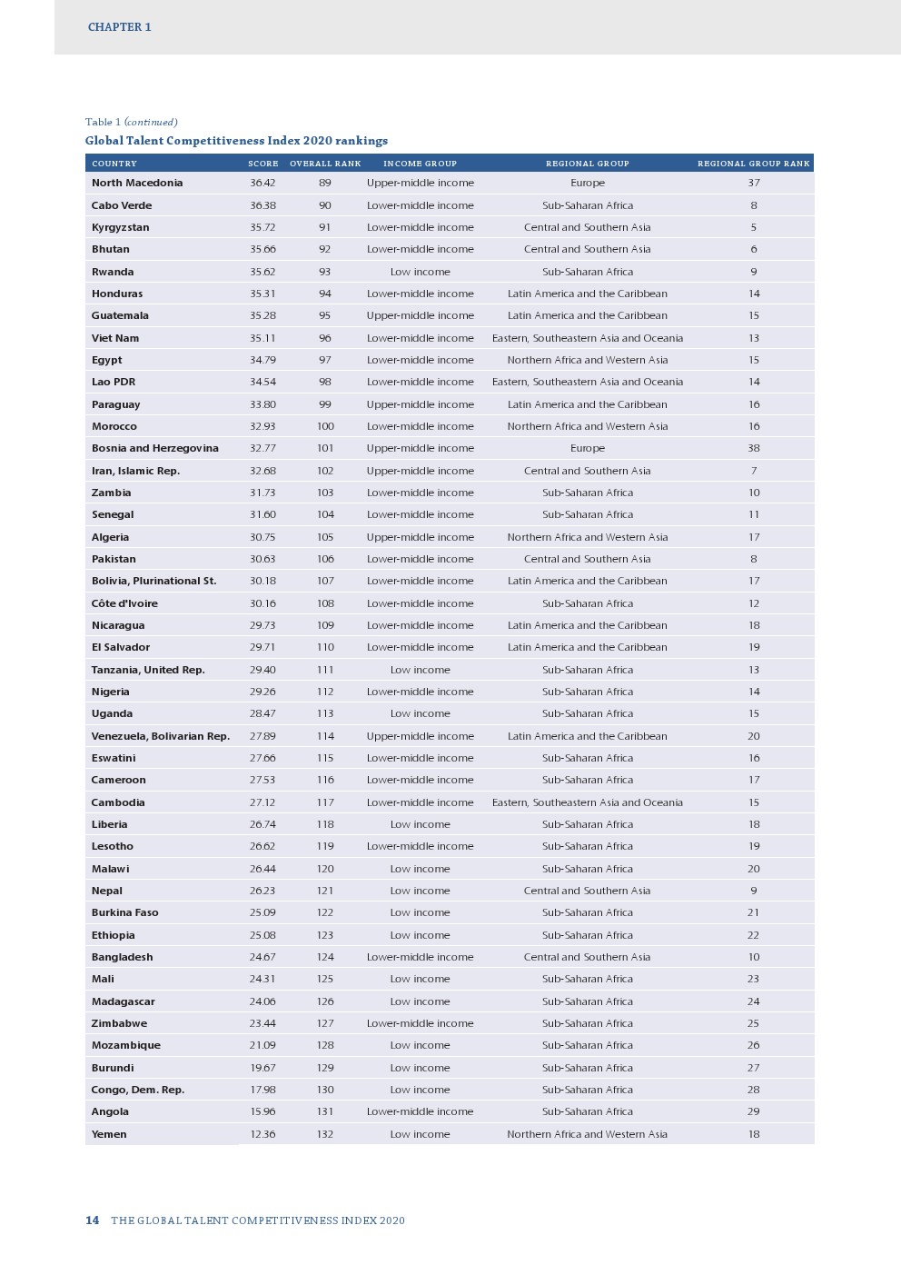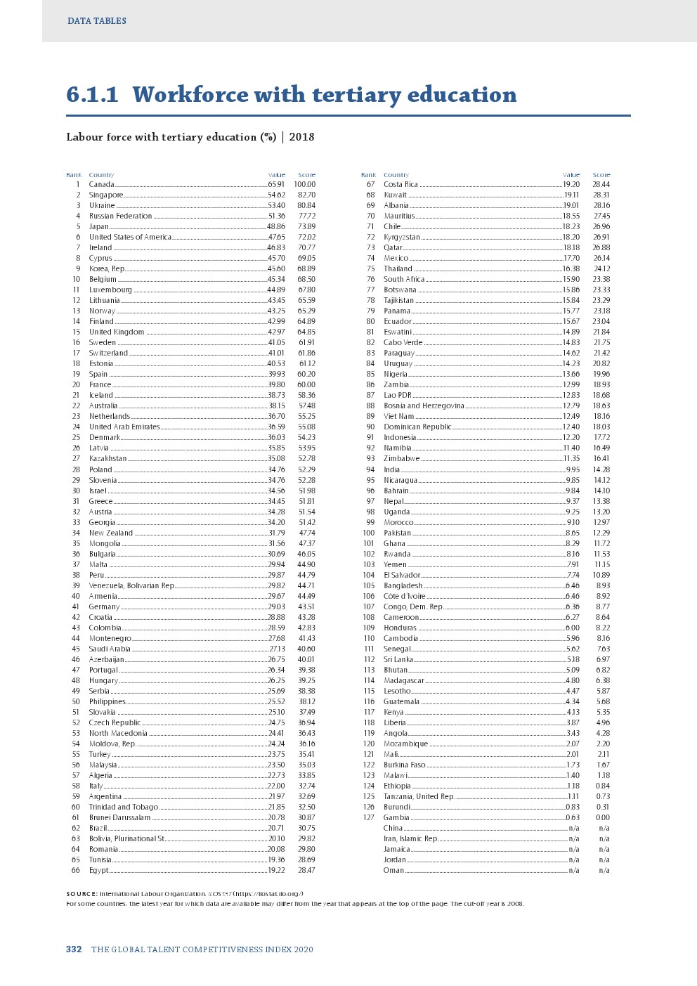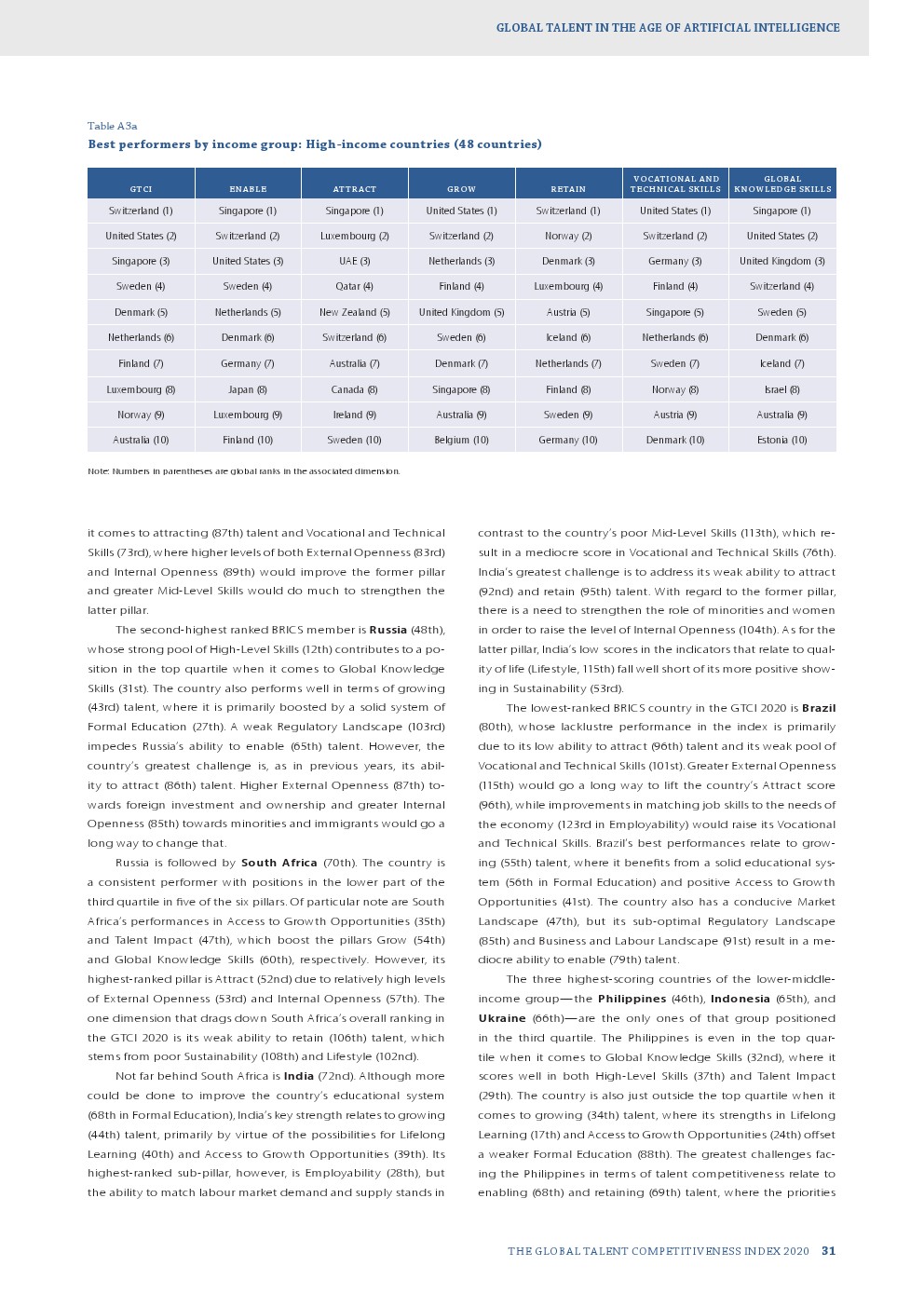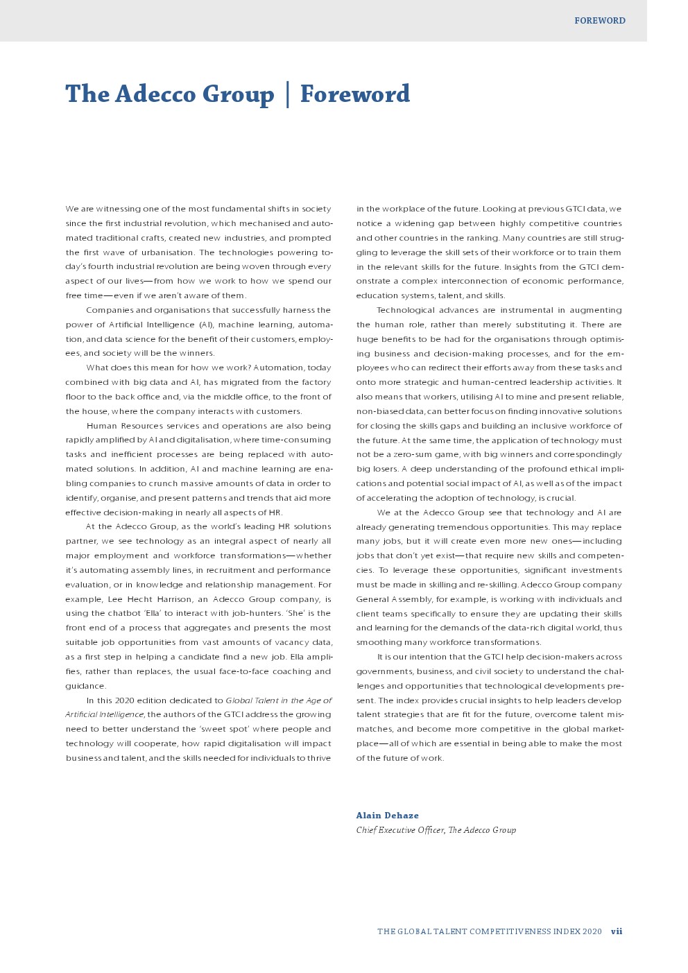 GTCI 发布了“2020年全球人才竞争力指数”,分析了人工智能时代全球人才趋势。