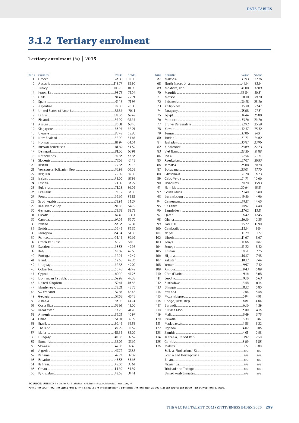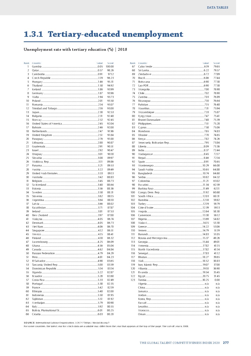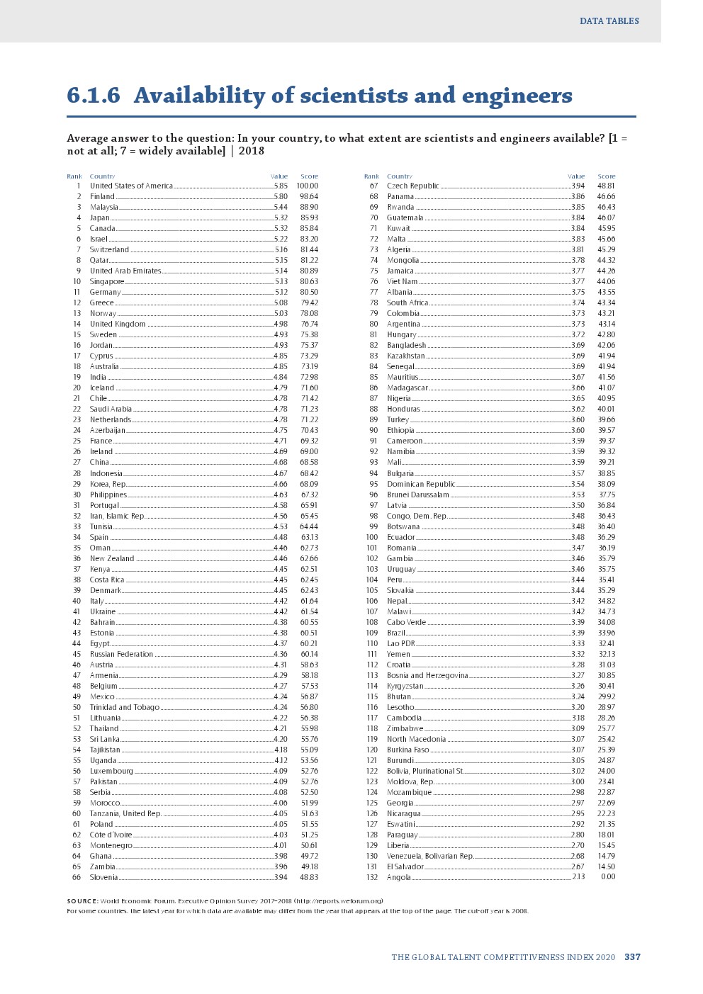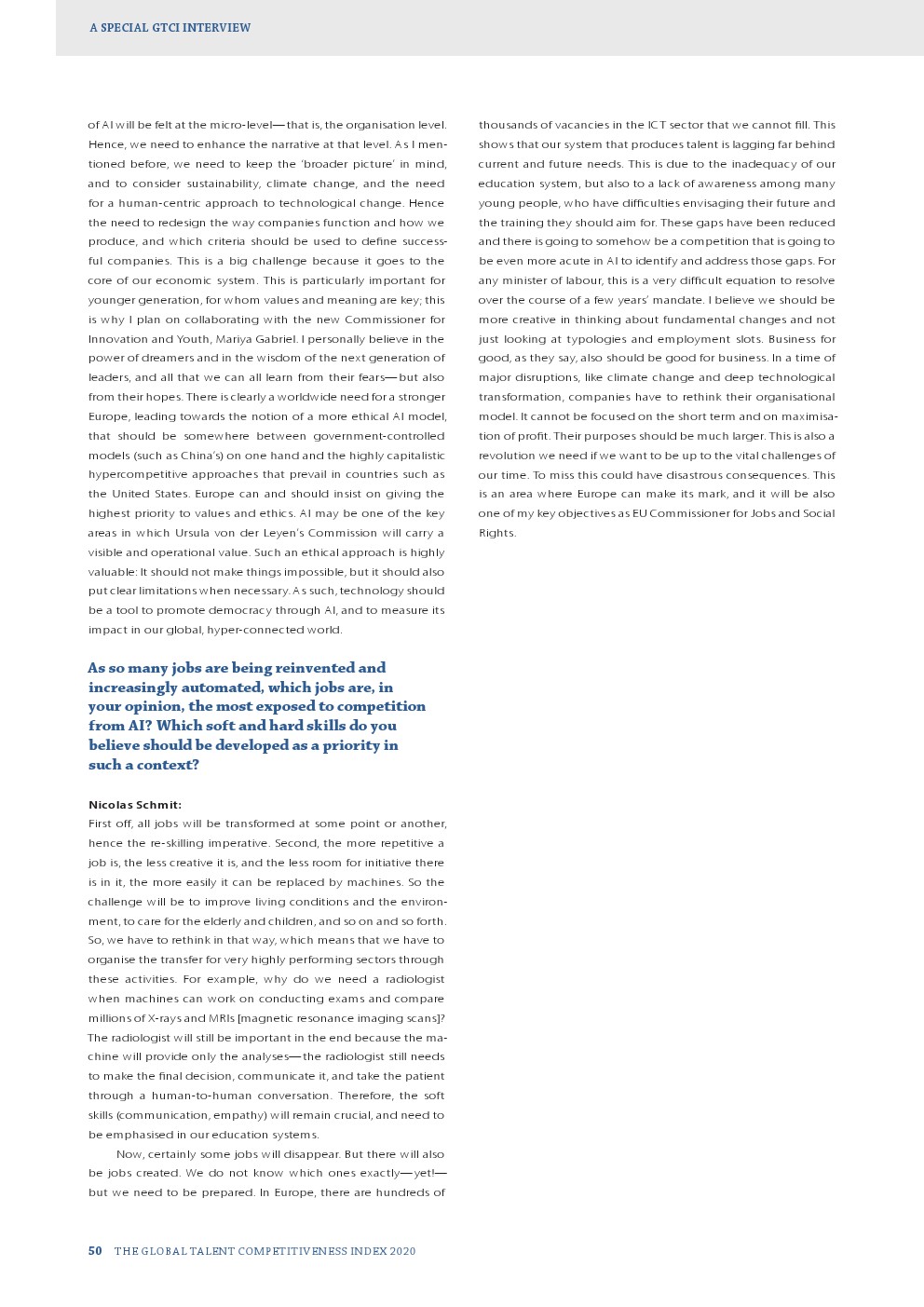 GTCI 发布了“2020年全球人才竞争力指数”,分析了人工智能时代全球人才趋势。