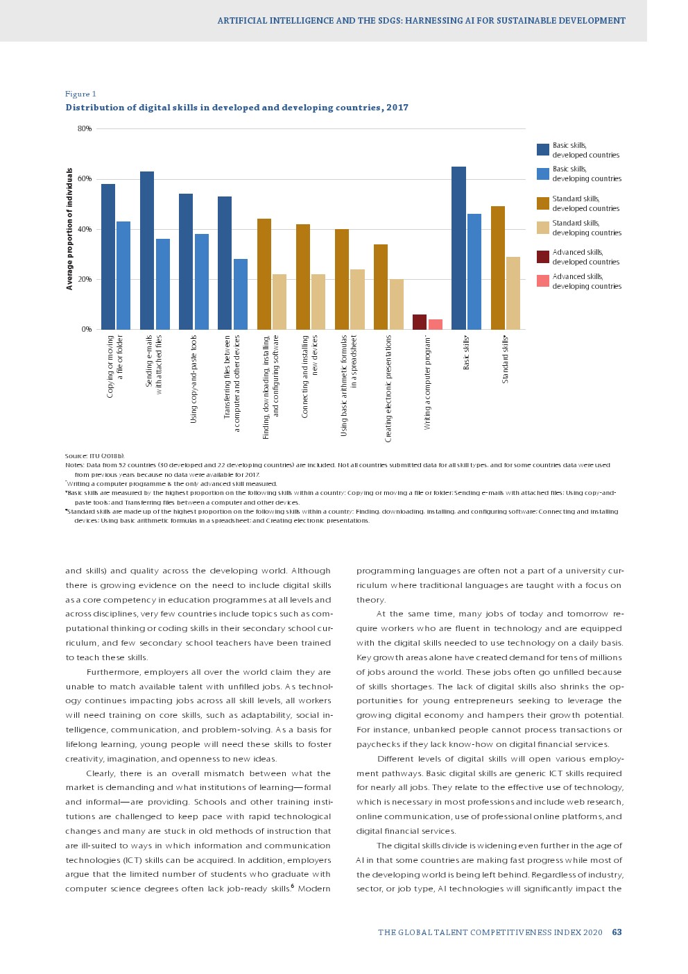 1:人才强国(大多数都是高收入国家)与世界其他国家之间的差距正在扩大。类似的鸿沟也出现在人工智能的领域。人工智能人才匮乏,而且各个行业、部门和国家之间分布不均。发展中国家一半以上的人口缺乏基本的数字技术。
