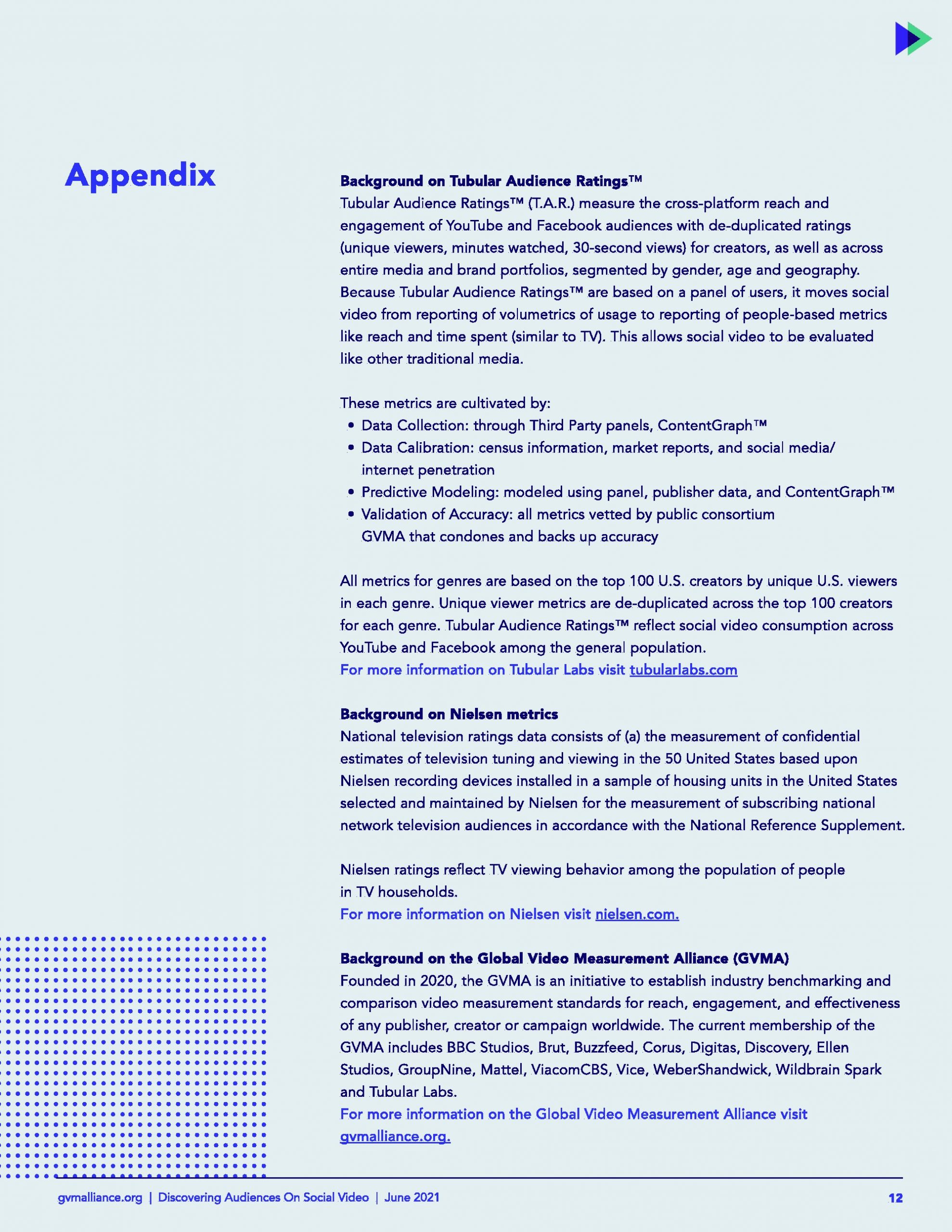GVMA(全球视频测量联盟)是一个由媒体公司、机构和品牌组成的联盟,共同致力于制定新的社交视频测量标准,以了解全球受众的真实参与度。