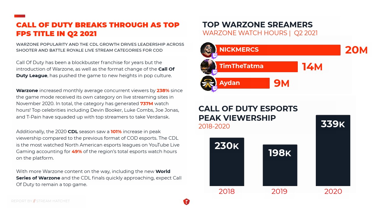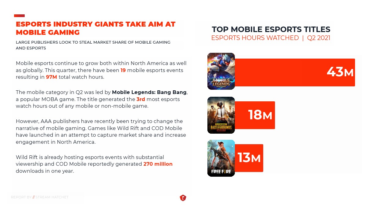 第二季度北美十大电子竞技赛事中约有31%的观看时间来自联播频道。与去年相比,联合流媒体观看时长增加了5个百分点。