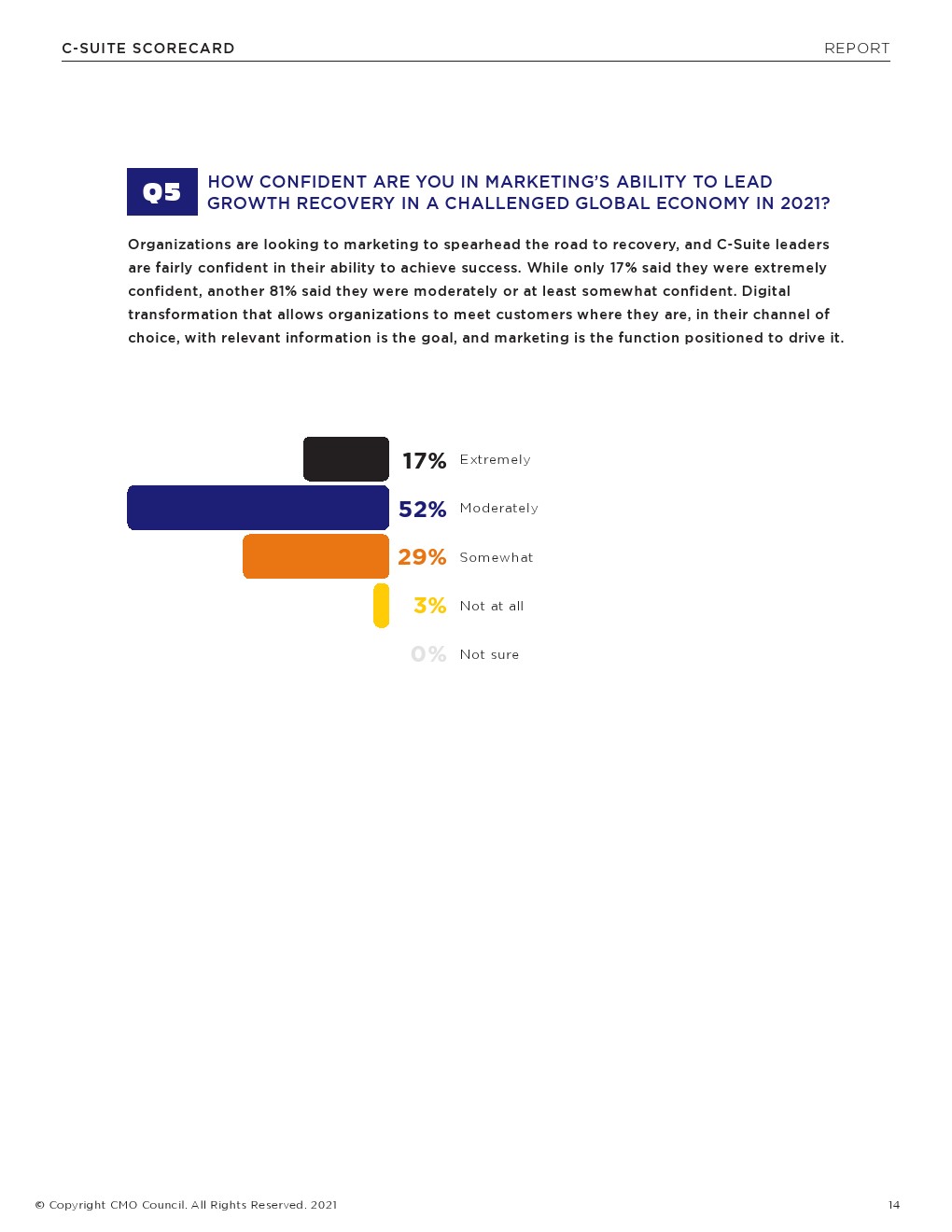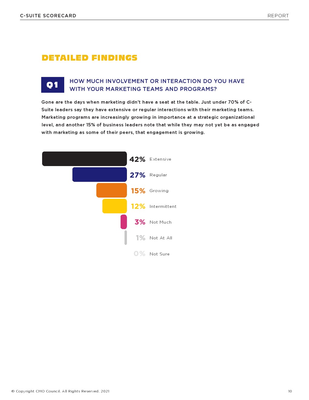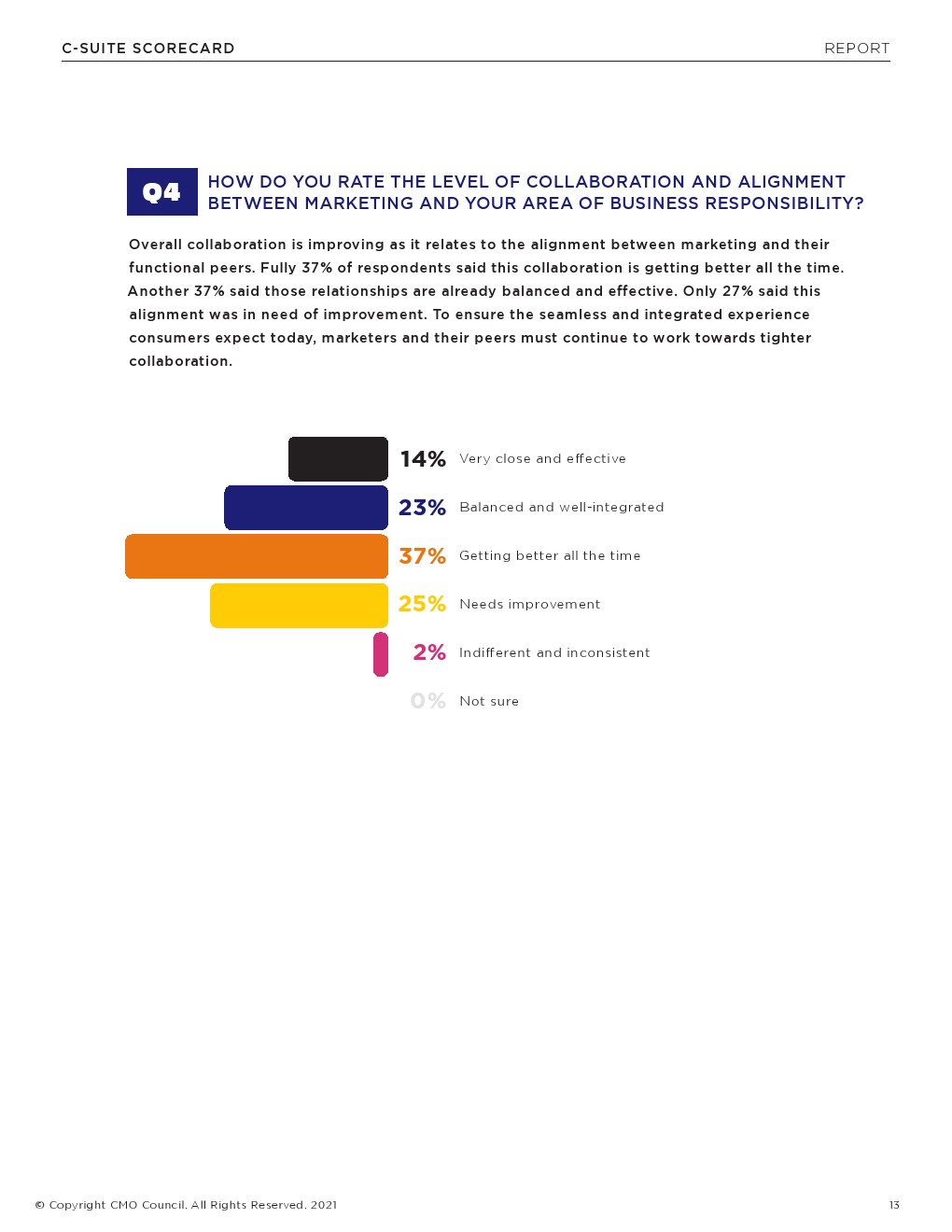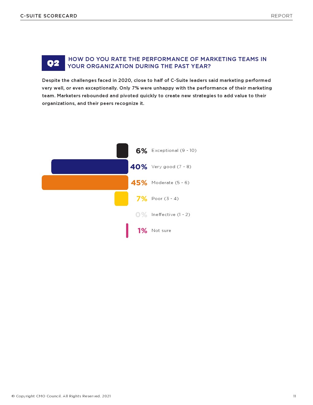 接受调查的最高管理层中有62%认为客户体验是CMO的一个重要角色。此外,4/10的受访者表示,CMO是客户洞察发挥作用的关键。