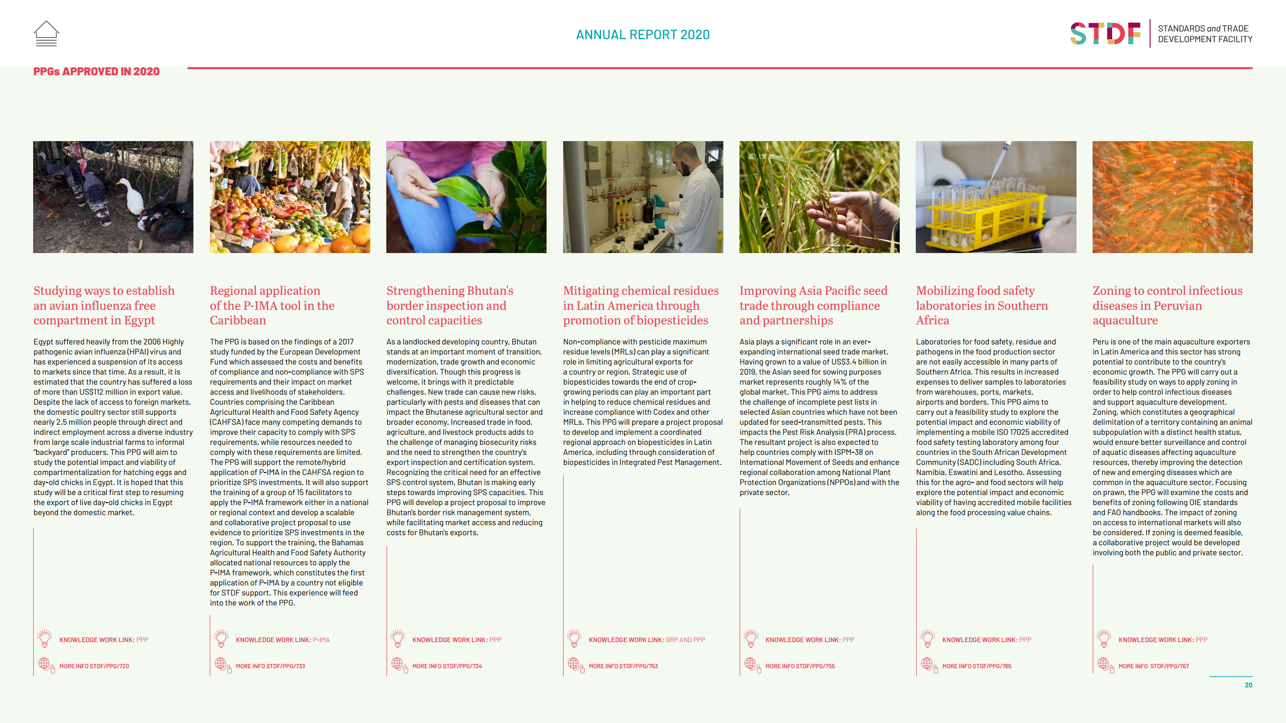 尽管大流行病带来了挑战,标准和贸易发展基金(STDF)在其所有的工作流中迅速适应,并在2020年继续提供强有力的成果,努力了解当地的新现实,并继续提供重要援助,以加强发展中国家的食品安全、动物和植物健康系统。