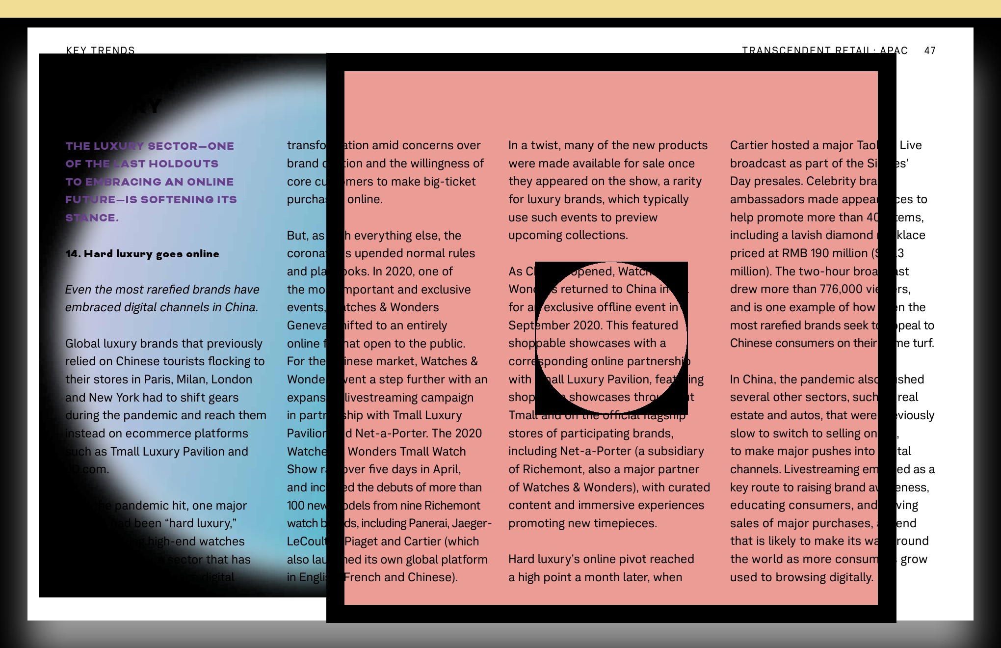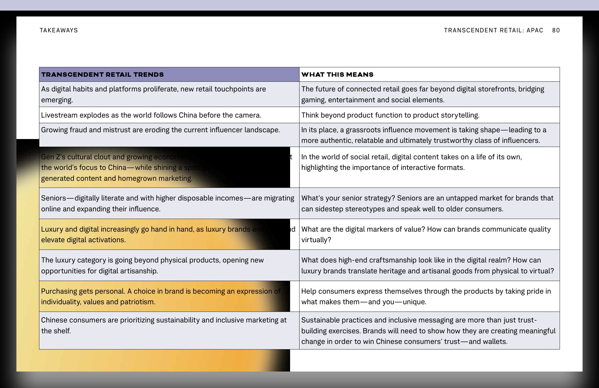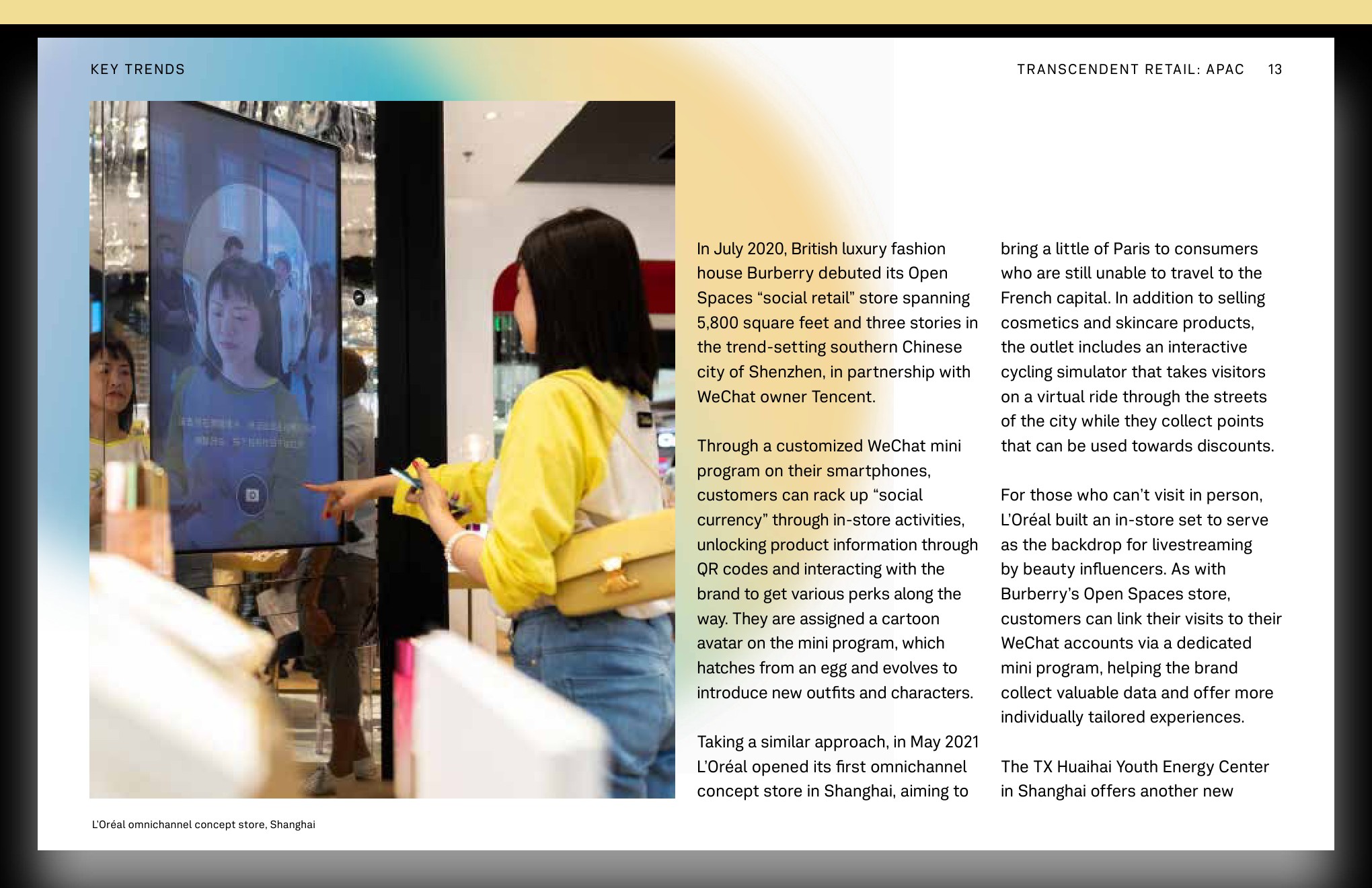 结果是创新的爆发:实体渠道和数字渠道的融合,直播的兴起,社交、游戏和购买在虚拟世界的扩张,以及界限变得越来越模糊。