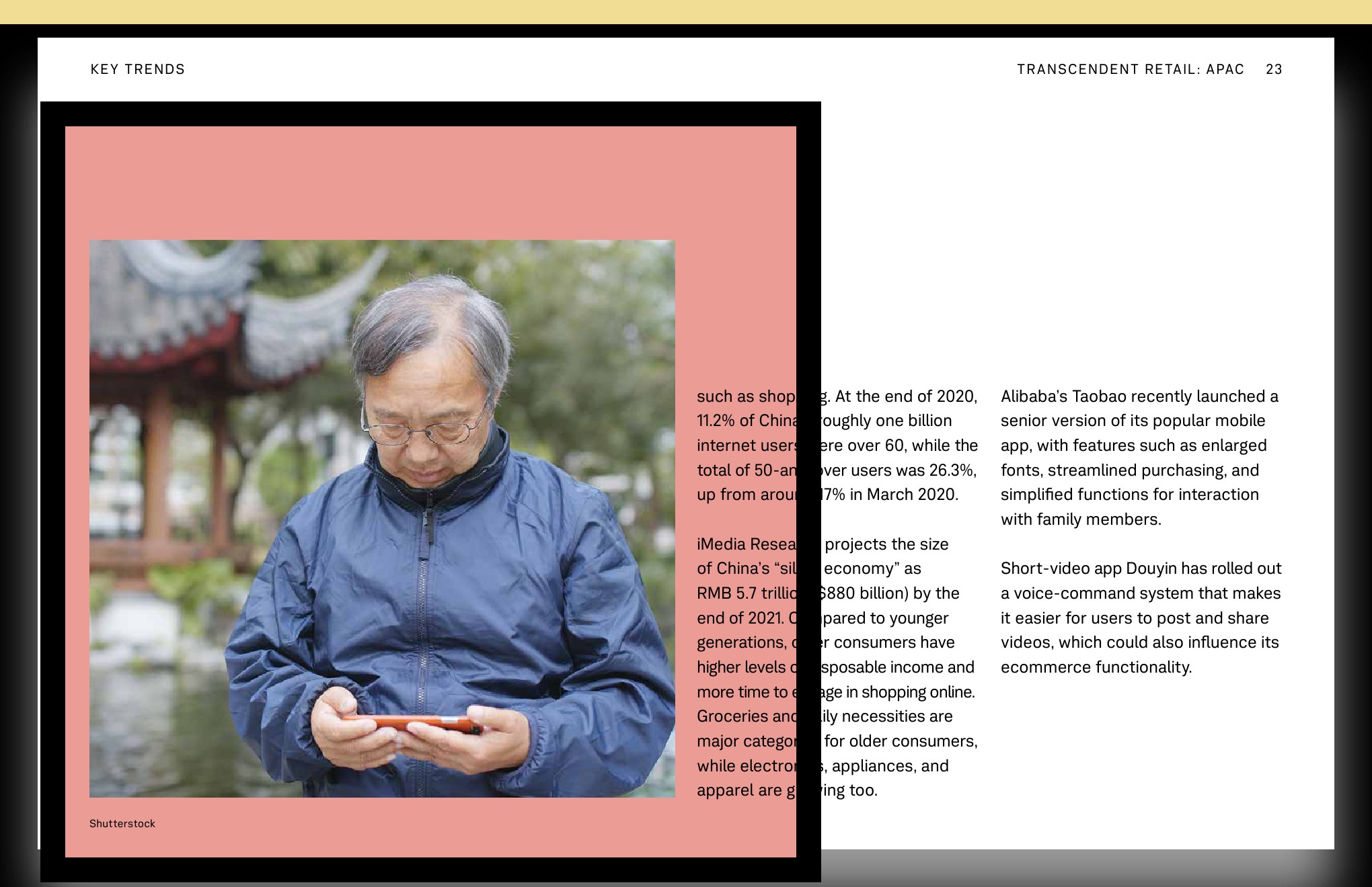到2020年12月,中国70%的人口(9.89 亿人)几乎都能通过手机上网。根据中国互联网络信息中心的数据,其中近80%的消费者在网上购物,86%的中国网民使用移动支付,94%的消费者收看在线视频。