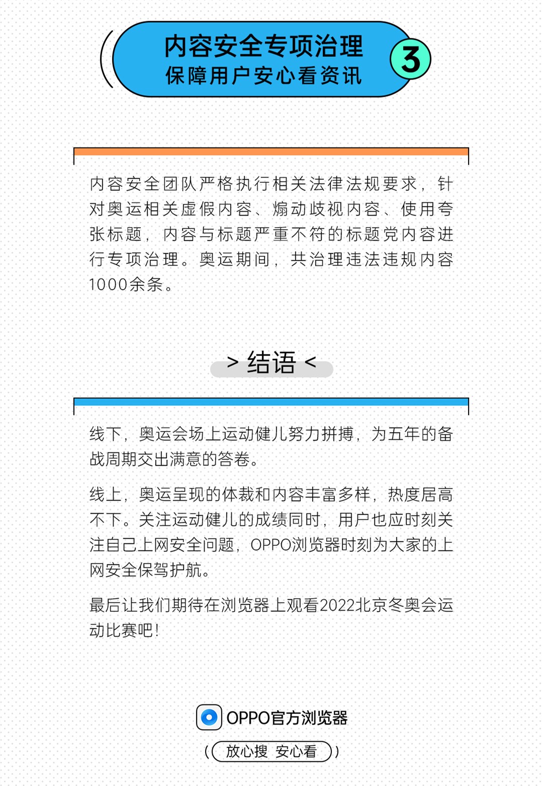 在本次奥运会期间,OPPO内容安全团队还进行了内容安全专项治理,严控奥运相关虚假、歧视信息,严抓“标题党”,让用户了解真实的奥运世界,放心“冲浪”!一直以来,OPPO始终将提升用户体验放在首位,OPPO浏览器在奥运期间的全程守护正体现了平台“防范未然”,一切以保障用户隐私安全为先的产品理念。