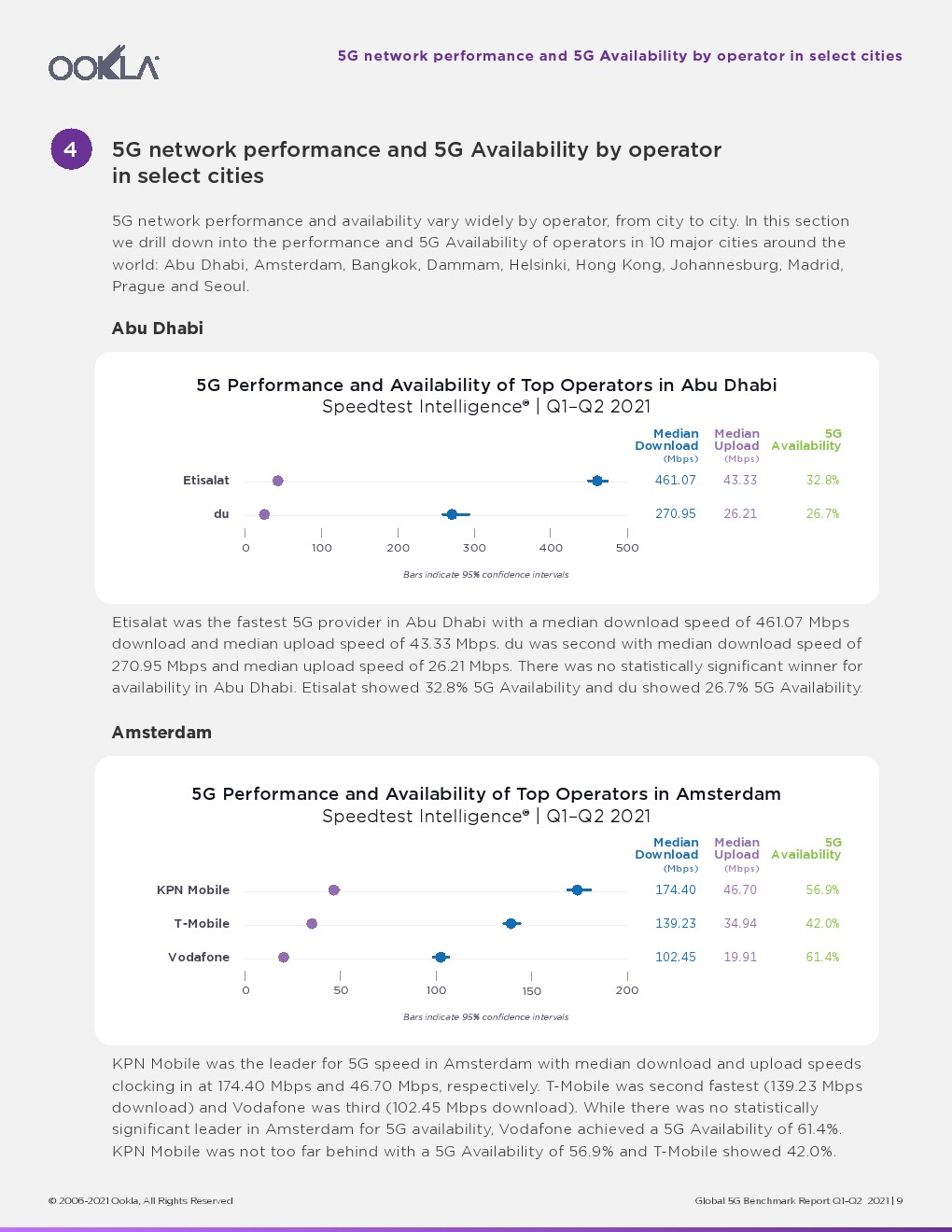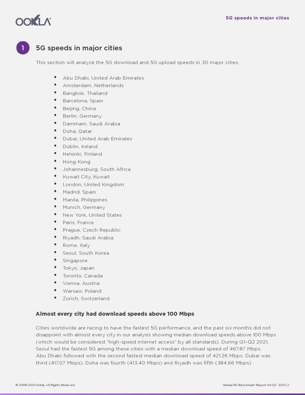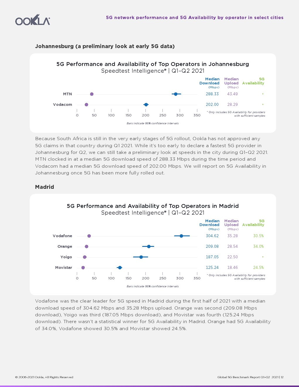 2021年已经过半,Ookla调查了全球主要城市的5G性能和可用性。