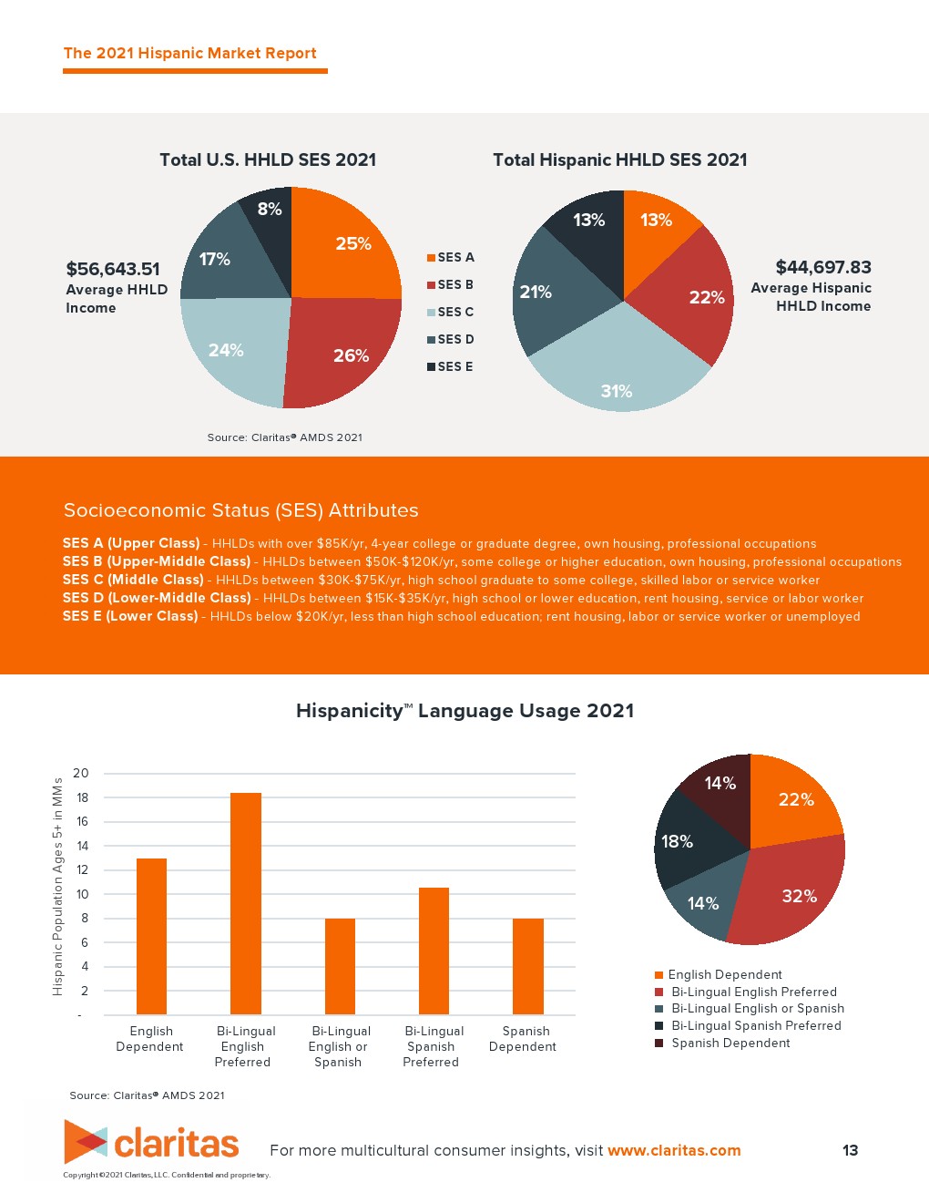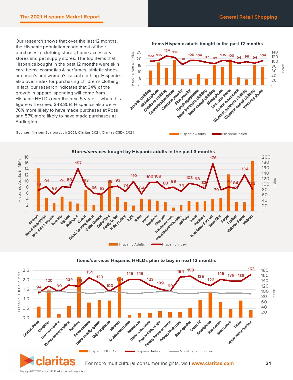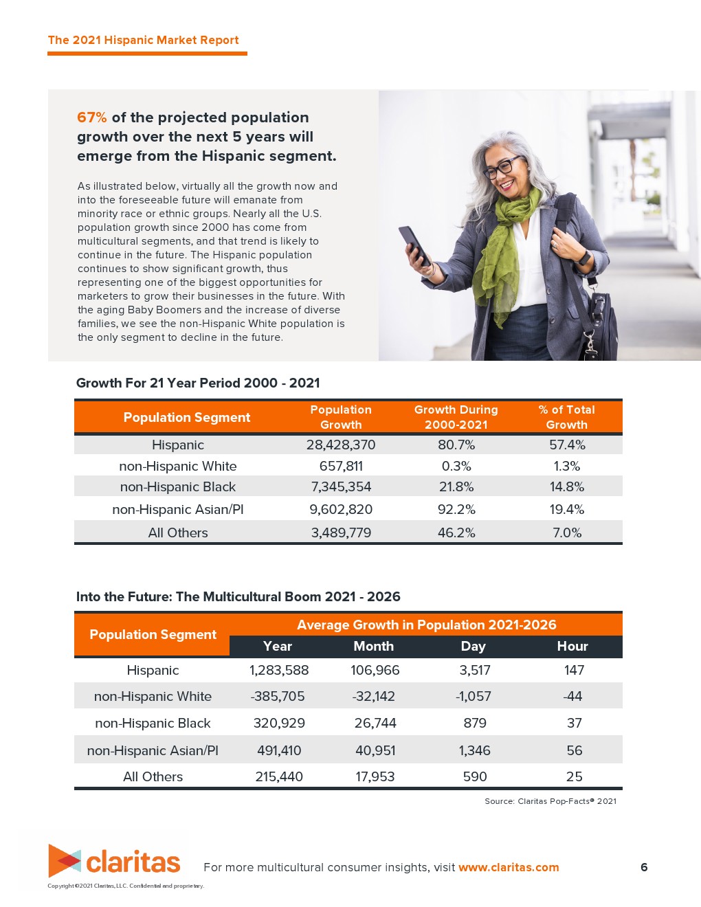 2021年,有超过6360万西班牙裔美国人。在可预见的未来,这种增长趋势将持续下去。按美国人口的百分比计算,在未来5年内,西班牙裔将占美国人口的21%,到那时,美国30岁以下人口的27.2%将是西班牙裔。同样重要的是西班牙裔消费者的购买力。2020年为1.9万亿美元,2021年将超过2万亿美元。西班牙裔家庭将在未来5年对消费者支出的增长做出不成比例的贡献,特别是在超过指数的类别中。