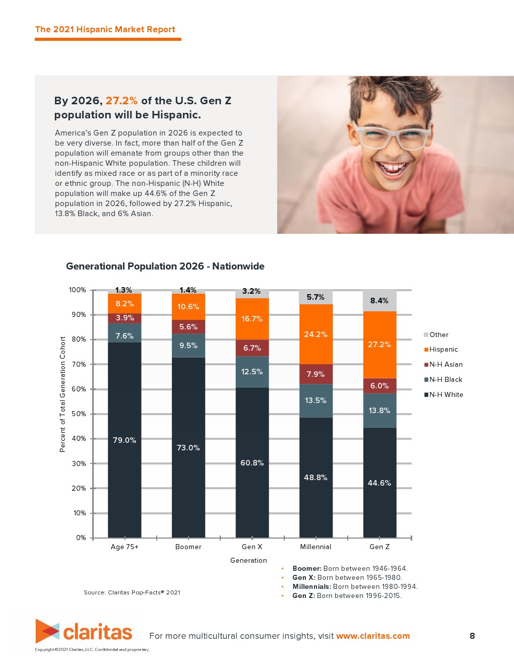 在新冠大流行之前,西班牙裔已经是美国经济增长的关键动力。根据去年的西班牙裔市场报告,西班牙裔占美国人口的19%,占最年轻一代(千禧一代和Z世代消费者)的近1/4。到目前为止,西班牙裔是美国人口增长最快的群体之一,占过去二十年增长的57%,在此期间增加了2800多万人。