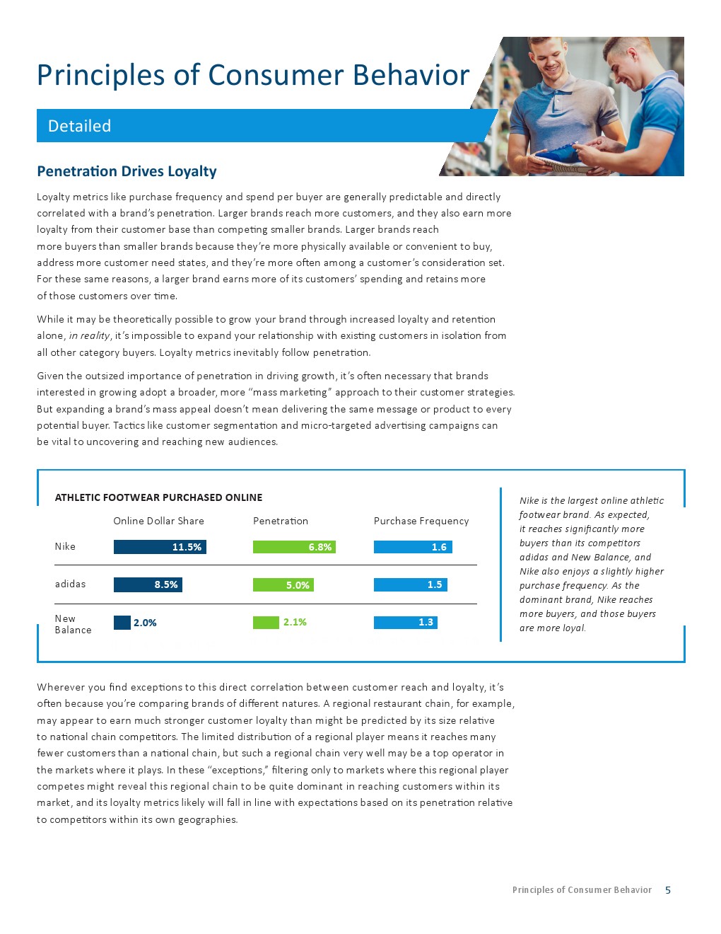 大品牌能接触到更多的客户,他们往往比小品牌的客户更有价值和忠诚度。营销人员经常迷恋苹果、星巴克和维多利亚的秘密等大品牌。像这样的品牌经常被认为拥有狂热粉丝群和极高的忠诚度。事实上,在追踪的所有行业中,几乎没有一个品牌或零售商仅仅通过巨大的忠诚度就能实现大规模增长。一般来说,忠诚度指标是高度可预测的,并且与品牌的渗透率(客户覆盖率)一致。