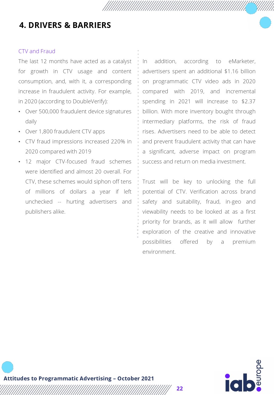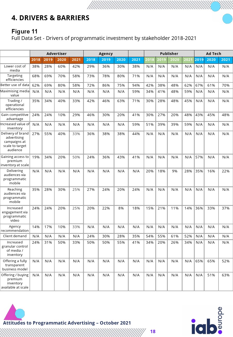 IAB发布了“2021年欧洲广告程序化购买报告”。2021年对广告程序化购买的态度突出了以下主要趋势: