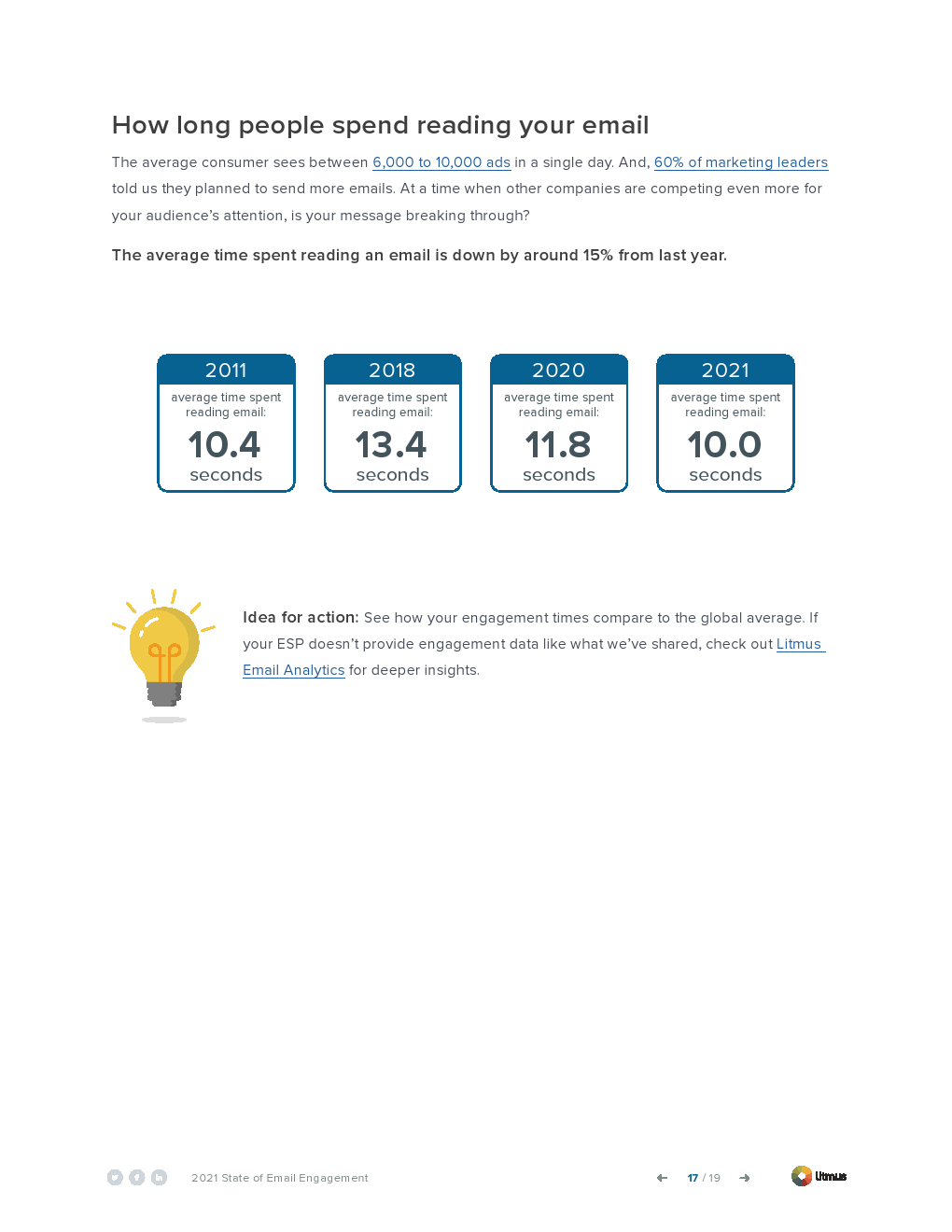 自第一季度以来,在手机上阅读的电子邮件平均下降了2%。对比2020年和2021年第一季度的数据,手机打开的电子邮件量下降了12.5%。