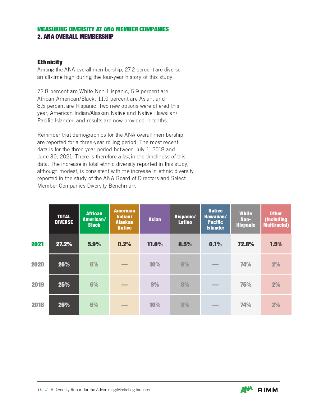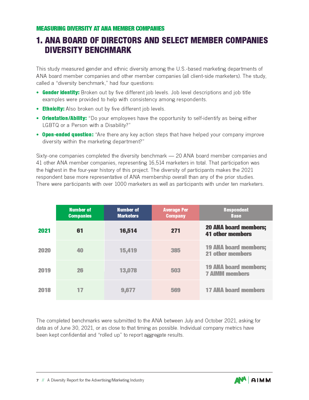 ANA多样性基准数据是当前多样性的最佳衡量标准,因为它是在一个最近的时间点(2021年6月30日)进行的,因此这是一个“实时”指标。