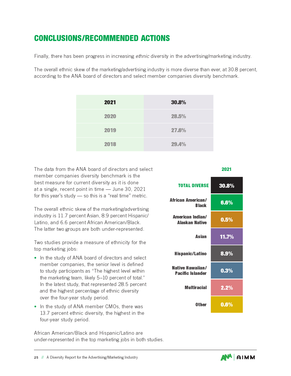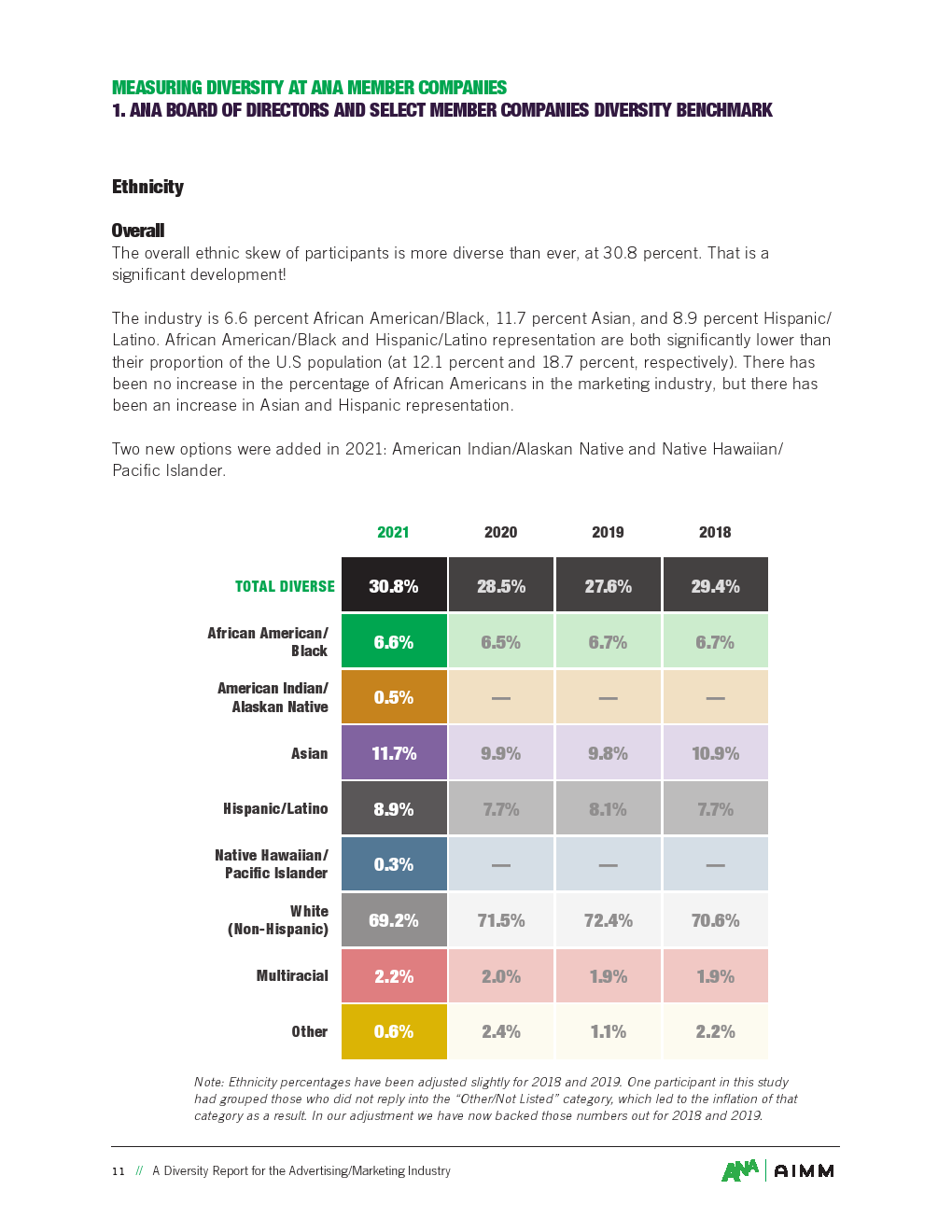 ANA发布了“2021年广告多样化报告”。在增加广告/营销行业的种族多样性方面已经取得了进展。根据ANA的调查,营销/广告行业的总体种族差异比以往任何时候都更加多样化,达到30.8%。