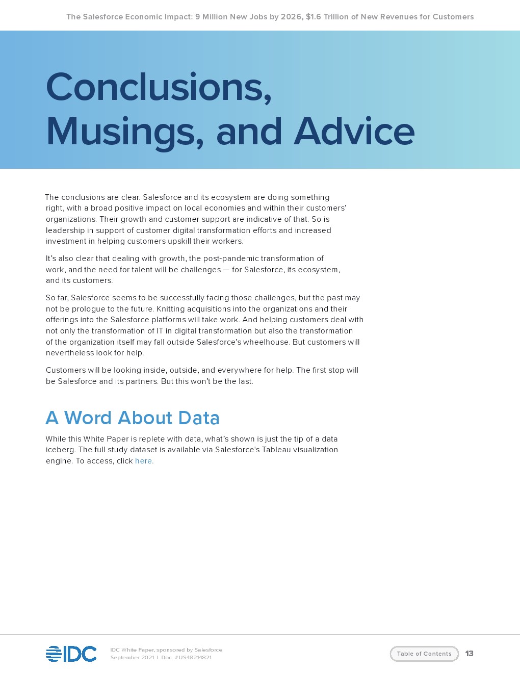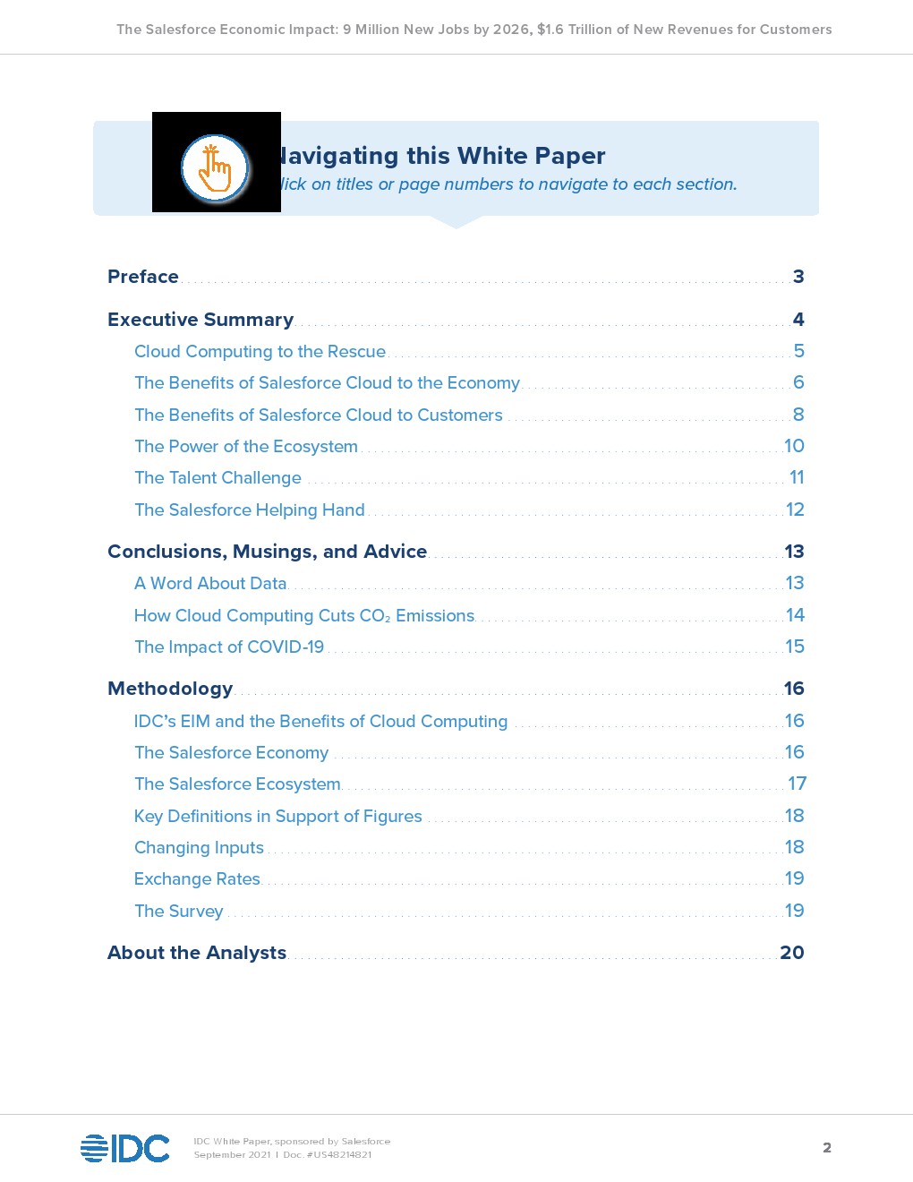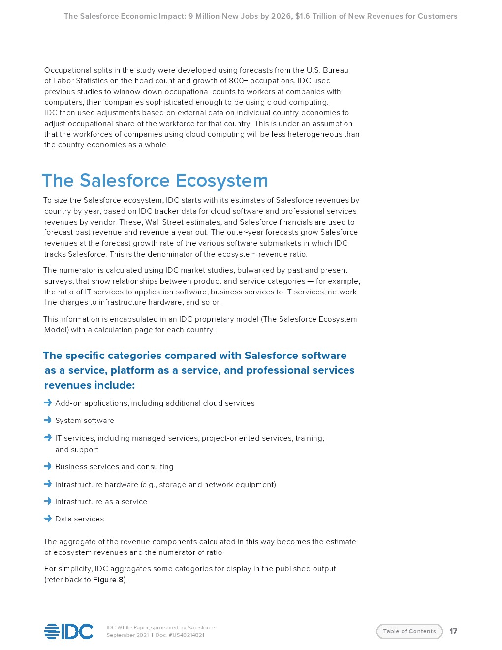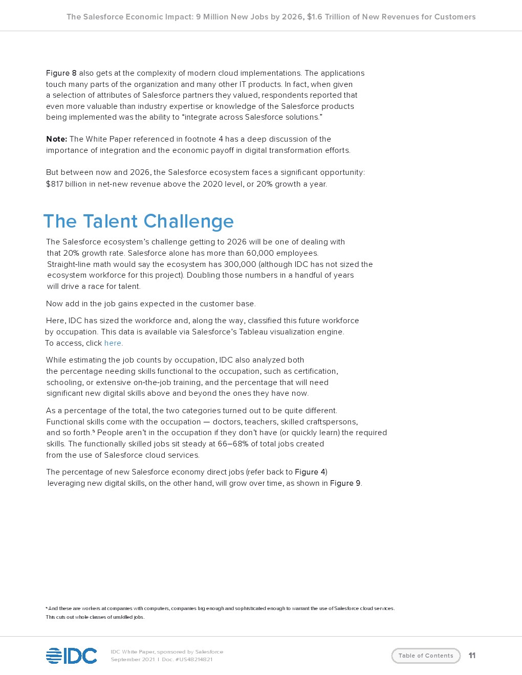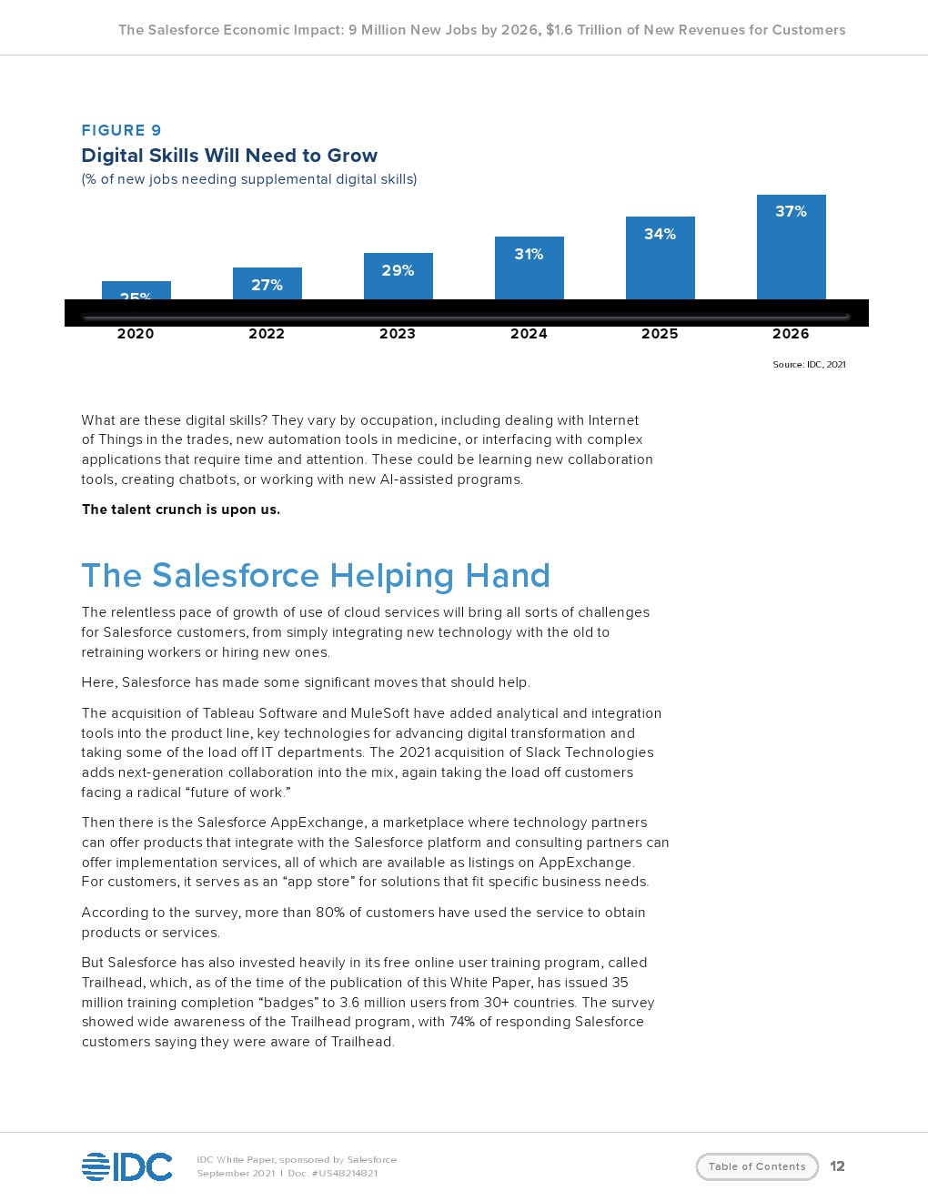 IDC预测,Salesforce及其生态系统的云服务将为客户创造新的收入。到2026年全世界的收入将达到1.56万亿美元。这一收入将创造930万个新工作岗位,包括380万个直接工作岗位和550万个间接工作岗位。