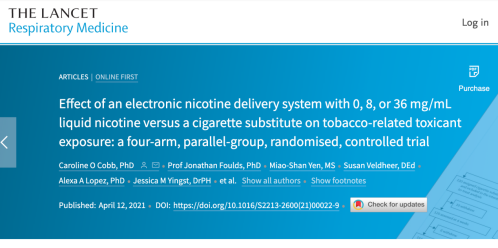 图:《柳叶刀-呼吸医学杂志》发布的论文曾指出,电子烟有效减少了烟民对肺致癌物亚硝胺的摄入