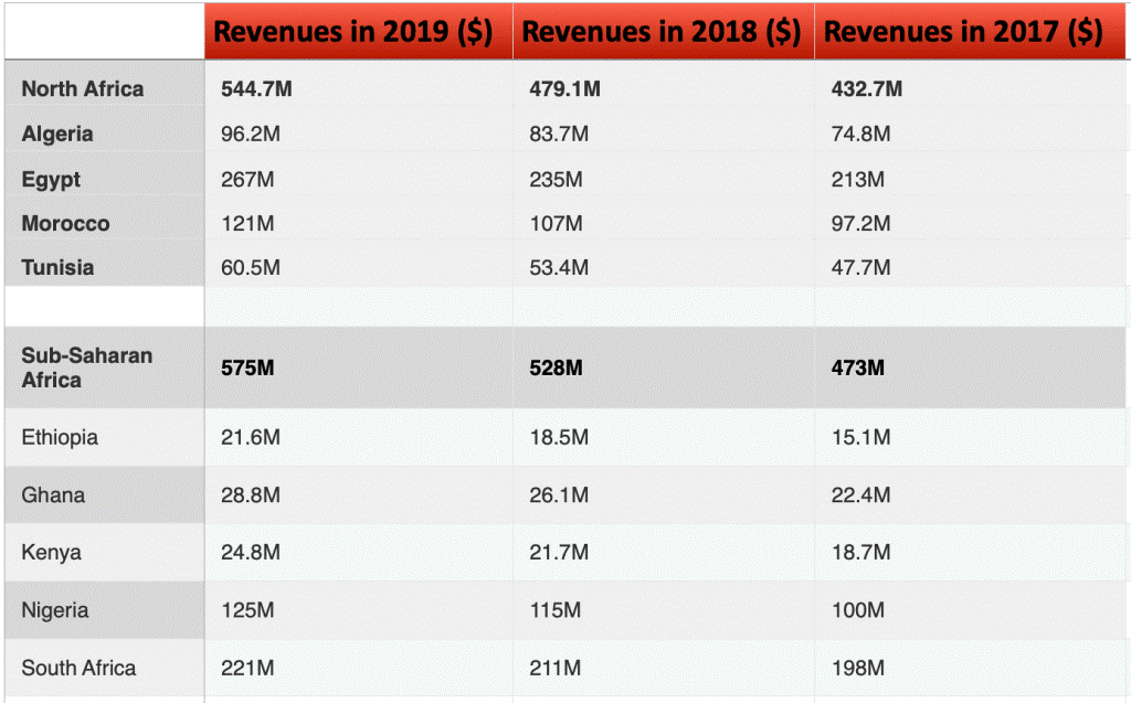 2017 年、2018 年和 2019 年,埃及占该地区游戏收入的近50%。