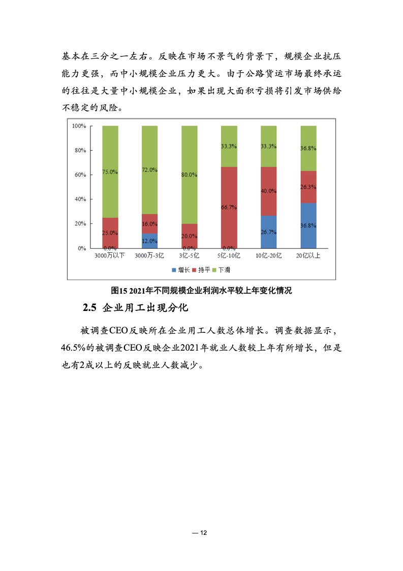 为反映2021年度公路货运市场景气度,洞察行业发展趋势,指导企业经营决策,2021年底,中物联公路货运分会邀请100位公路货运各领域的经营负责人(CEO、CMO、运营总监),开展了“2021年度公路货运景气度CEO调查”。