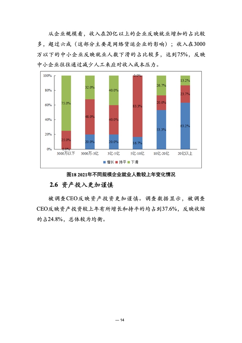 调查数据显示,60.4%的被调查CEO反映所在企业收入规模较上年增长,40%左右的企业反映收入较上年持平或下滑。