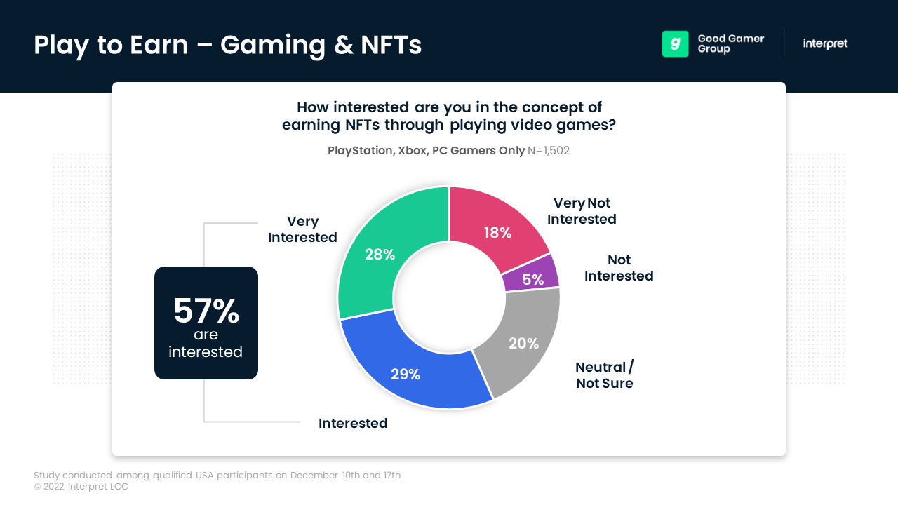 虽然 NFT、加密货币和区块链由于诈骗者和加密采矿对环境的影响而受到严厉批评,但游戏玩家不可否认的兴趣是发行商不能忽视的。 Interpret 最近调查了1500 名NFT/加密游戏小组成员发现,超过 56% 的受访者对通过玩电子游戏赚取 NFT 的想法感兴趣。