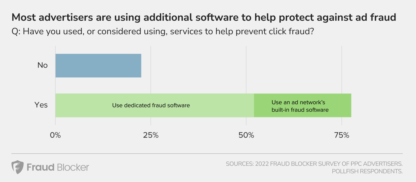 市场上有几家可以帮助广告主实时检测、阻止欺诈行为的服务。调查显示,大约50%的广告主使用这些服务或考虑使用其中一项。