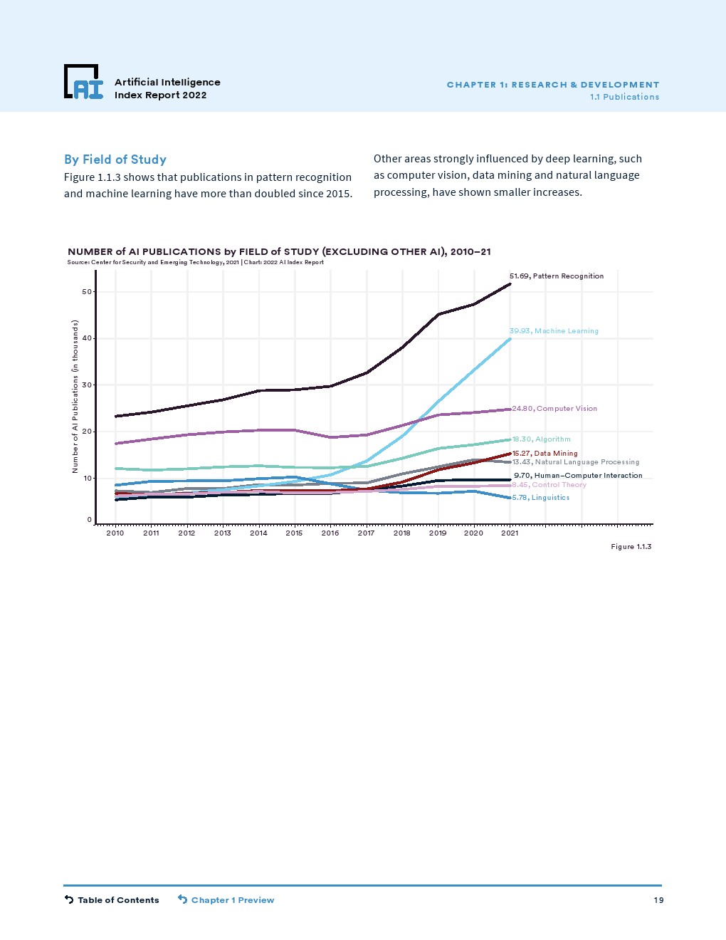 对25个国家/地区的 AI 立法记录进行的AI指数分析显示,包含“人工智能”的法案数量从2016年的1项增加到2021年的18项。