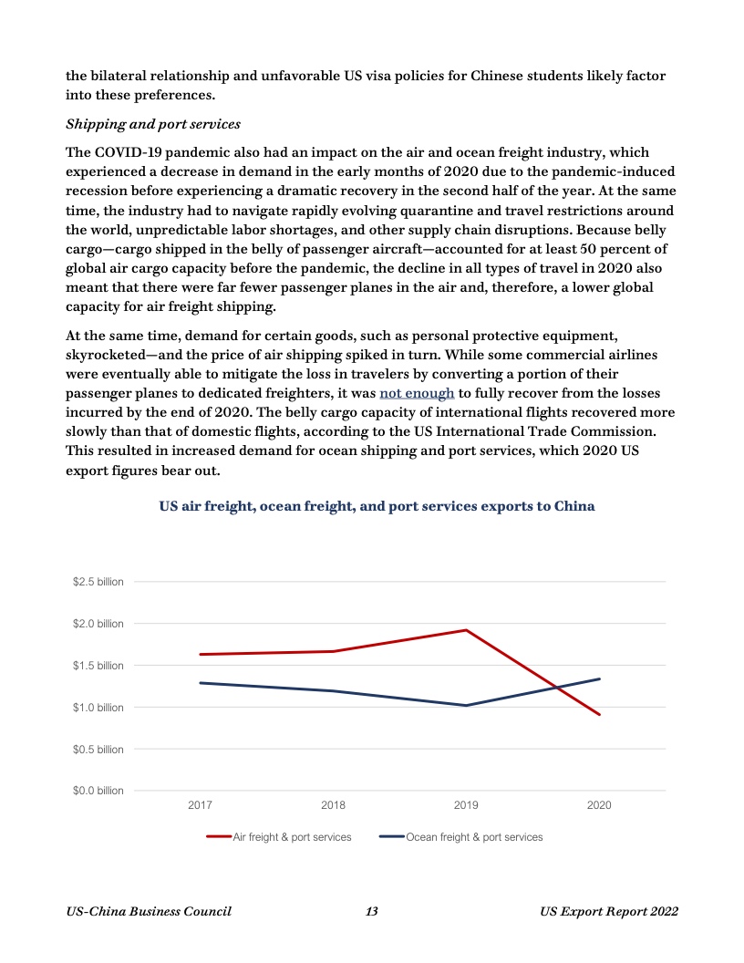 数据显示,2020年,在美国经济遭受新冠疫情严重冲击之际,对华货物和服务贸易出口支持了超过85.8万个美国工作岗位。