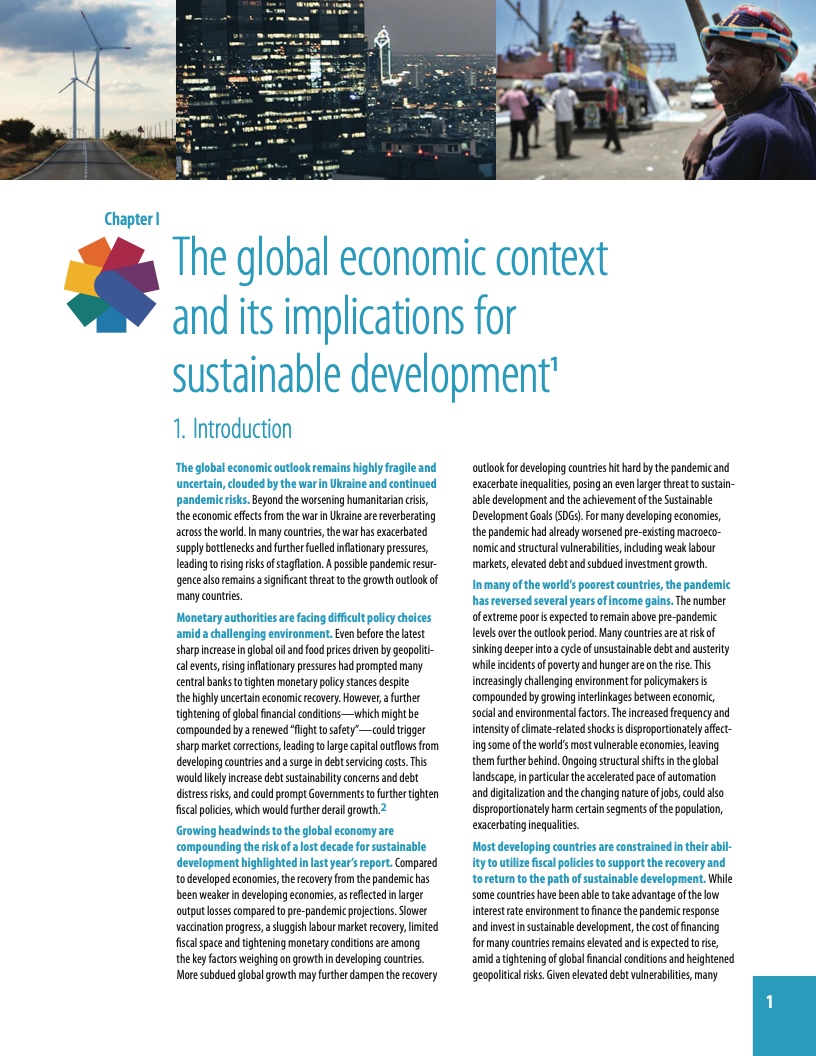 联合国经济和社会事务部负责编写这份报告。主管经济和社会事务的副秘书长刘振民表示:“发达国家在过去两年中证明,数百万人可以通过正确的投资摆脱贫困——即在具有韧性和和清洁的基础设施、社会保护或公共服务方面进行投资。国际社会必须在这一进展的基础上再接再厉,确保发展中国家能够以类似的水平进行投资,同时减少不平等并确保可持续的能源转型。”
