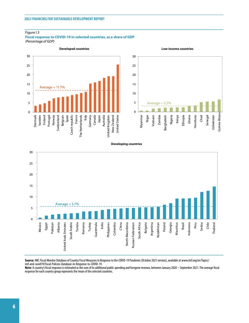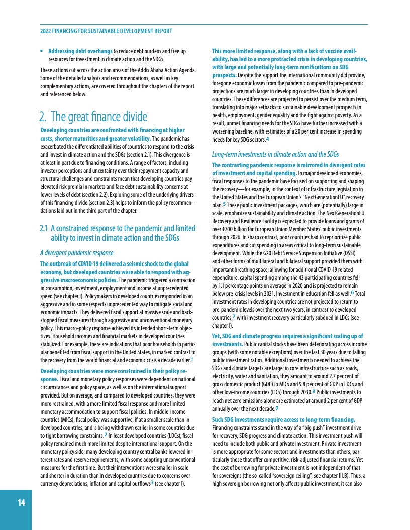 《2022年可持续发展融资报告: 弥合融资鸿沟》发现,虽然富裕国家能够以创纪录的超低利率借款支持其疫情复苏,但最贫穷国家却花费数十亿美元偿债,这使它们无法投资于可持续发展。