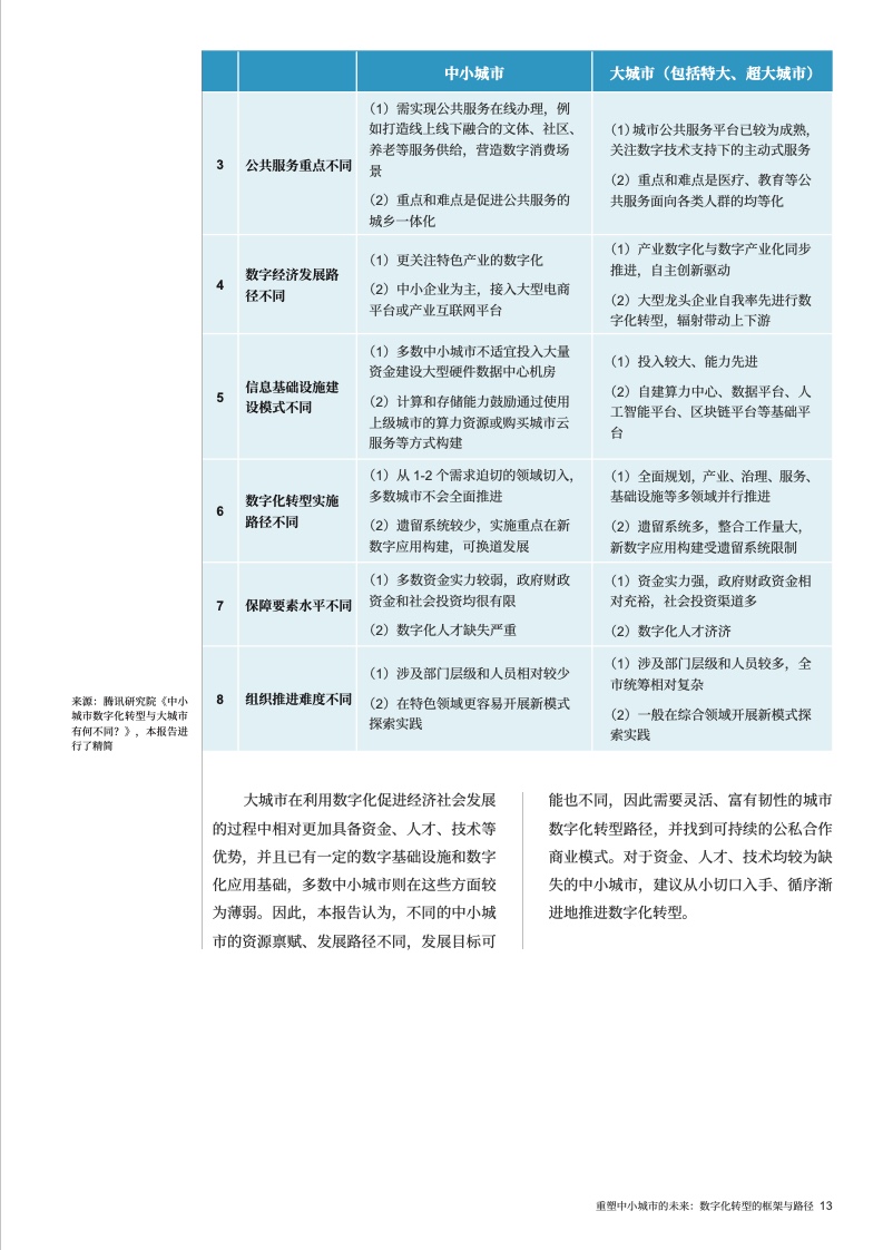 – 中小城市数字化转型应该采取“共性+特性”结合的思路,此外,中小城市数字化转型的规划和推进中还要注意中小城市与大城市的差异。