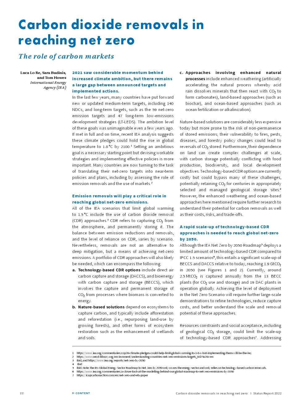 2022年ICAP的报告详细介绍了全球排放交易的最新发展。政策制定者和政府顾问深入探讨了欧盟排放交易体系、中国国家排放交易体系、加利福尼亚总量控制与交易计划和英国排放交易体系的细微差别和重要经验教训。美洲碳定价平台和国际能源署的分析也揭示了 ETS 经验,这些经验将变得越来越全面。