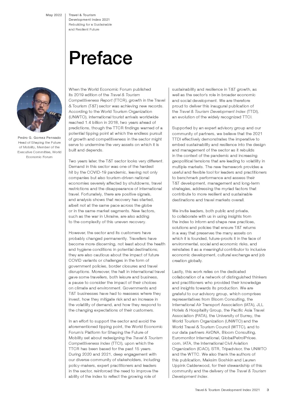 2021年旅行与旅游发展指数(TTDI)是世界经济论坛塑造未来出行的旗舰指数。TTDI 的主要发现与旅游业的发展、复苏的挑战以及如何更好地重建有关。