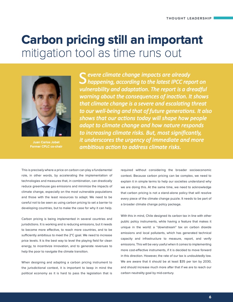 碳定价领导联盟(CPLC)是各国、私营部门和利益相关方交流碳定价政策最佳实践、传播关键研究、增强领导力并激励他人效仿的主要途径。CPLC为碳定价对话树立了标杆——从分析碳价政策有效覆盖范围的净零目标和碳定价工作组,到最新的 《净零目标和碳定价报告》,其中指出如何在实施到本世纪中叶实现净零排放战略的过程中充分挖掘碳定价潜力。