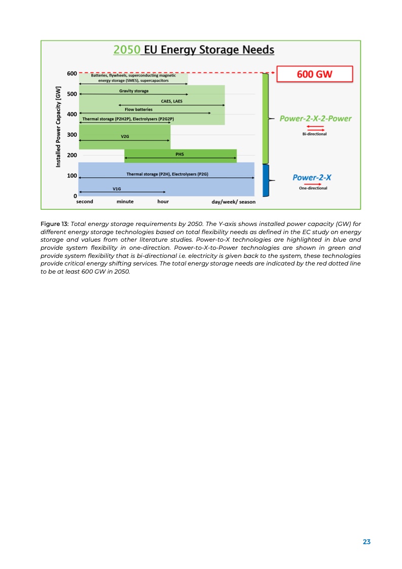 经报告测算,到2030年,欧洲将需要部署大概200GW的储能,到2050年,需要部署600GW储能以帮助欧洲实现减少对外部化石燃料进口的依赖,确保欧洲能源经济安全,从而缓解如今的高电价并助力实现温室气体减排目标。