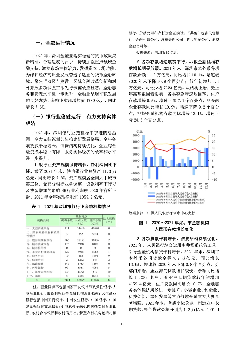 截至 2021 年末深圳市辖内银行业总资产 11.3 万 亿元,同比增长 7.8%,资产规模居全国大中城市 第三位。受部分银行业务调整、贷款利率下行以 及拨备增加的影响,银行业利润较 2020 年有所下 滑。2021 年全年实现净利润 1055.2 亿元。