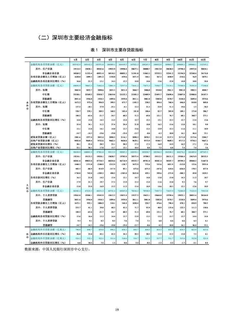 2021 年末,深圳市本外币各项存款余额 11.3 万亿元,同比增长10.4%,增速较2020 年末下降 10.9 个百分点;较年初增加1.1万亿元,同比少增 7323 亿元。从结构上看,受上年高基数因素影响,各类存款增速均回落。住户存款增长 9.5%,增速下降7.1 个百分点;非金融企业存款同比增长10.9%,增速下降9.2个百分点;非银金融机构存款同比增长12.1%,增速下降 28.8 个百分点。