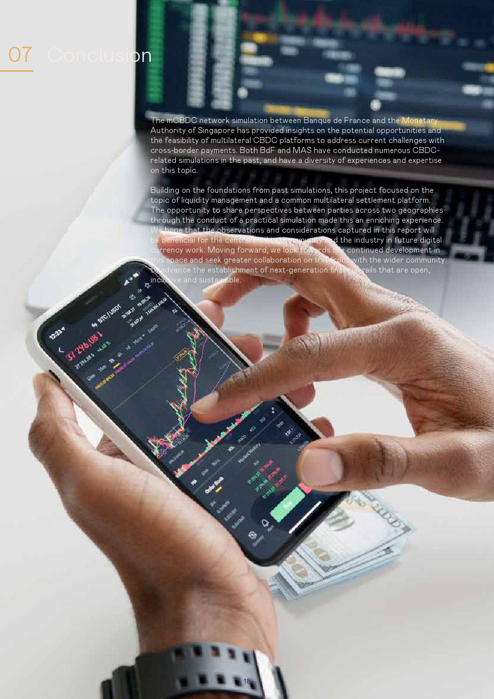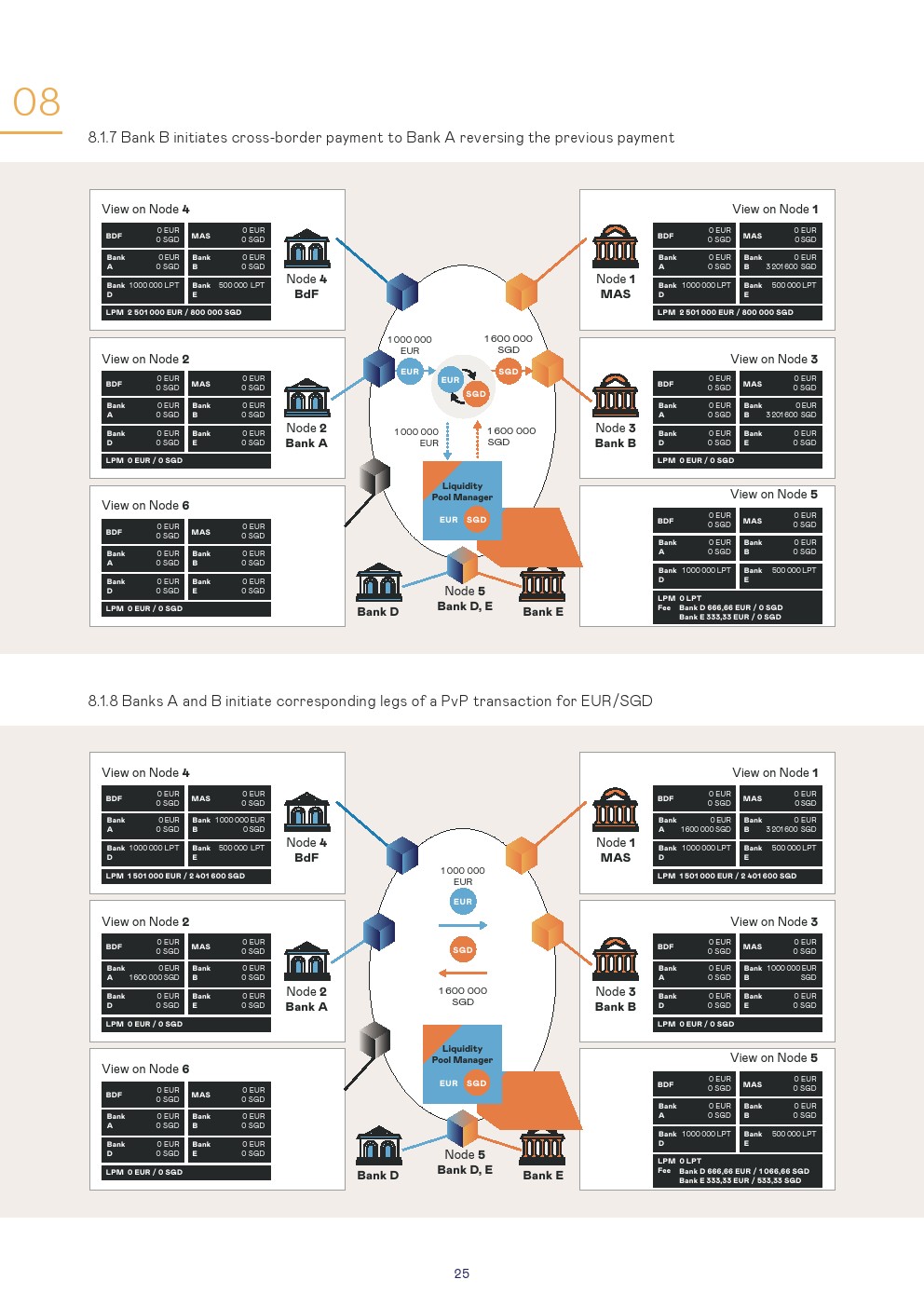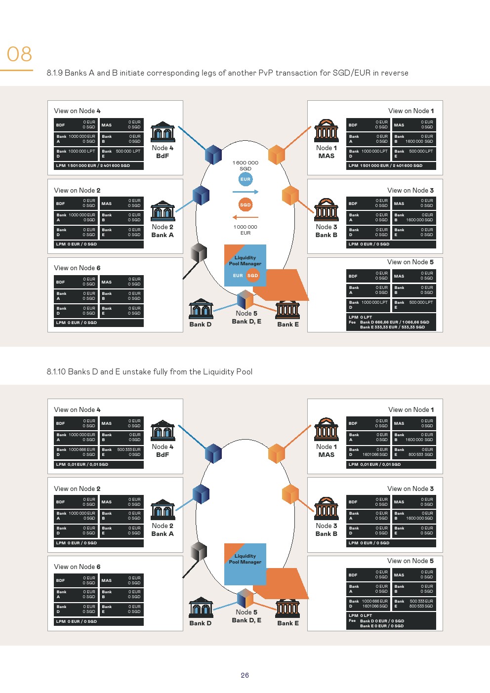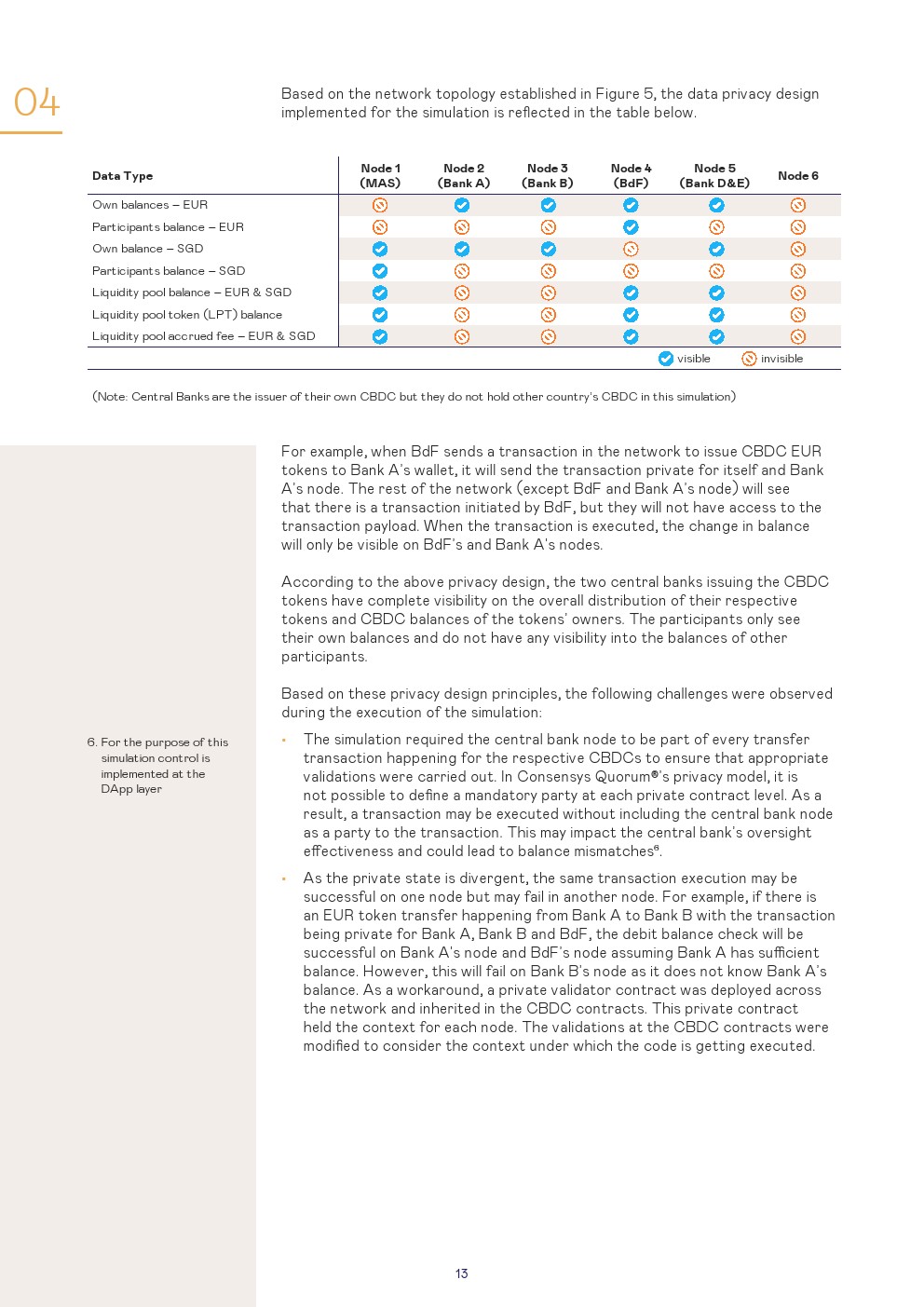 本报告讨论了使用第三种模式进行管理的设置和结果,这是一种技术不可知的安排,其中设置了一个单一的CBDC系统,可以在该系统上交换货币。对于该模拟,商业银行以欧元CBDC和新加坡元CBDC进行:1、跨境支付和2、跨货币支付对支付(PvP)的交易。