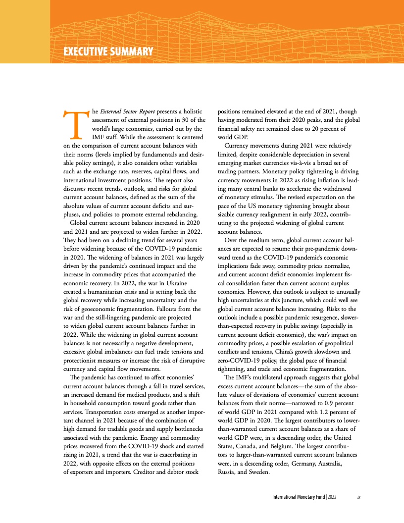 其他一些因素也可能扩大全球经常账户差额,包括俄乌冲突持续更久导致大宗商品价格在更长时间维持高位,央行加息幅度的变化,以及地缘政治紧张局势加剧导致全球经济割裂、扰乱供应链并可能引发国际货币体系的重构。
