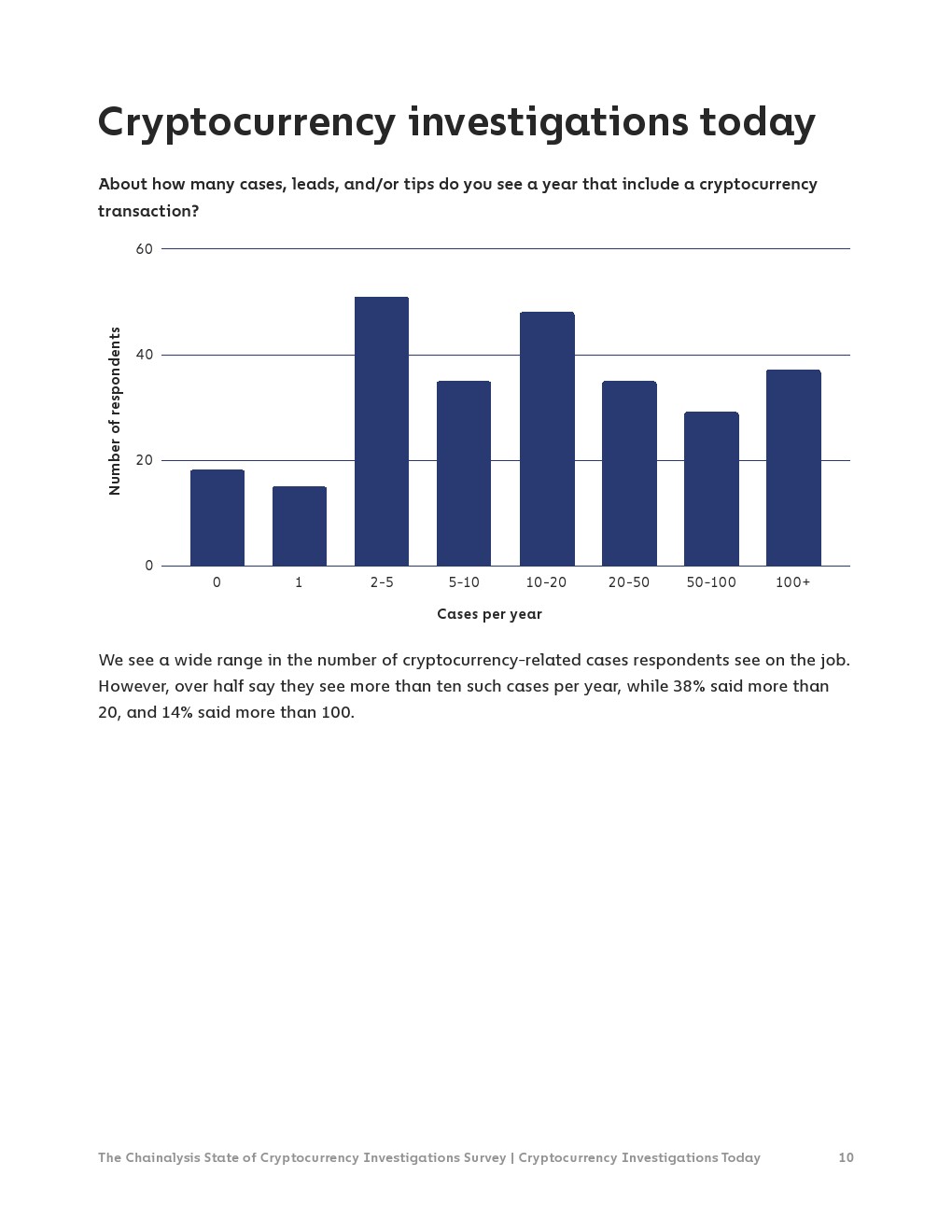 公共部门雇员需要更多资源。74%的受访者表示,他们机构的员工目前不具备调查与加密货币相关的犯罪的能力。
