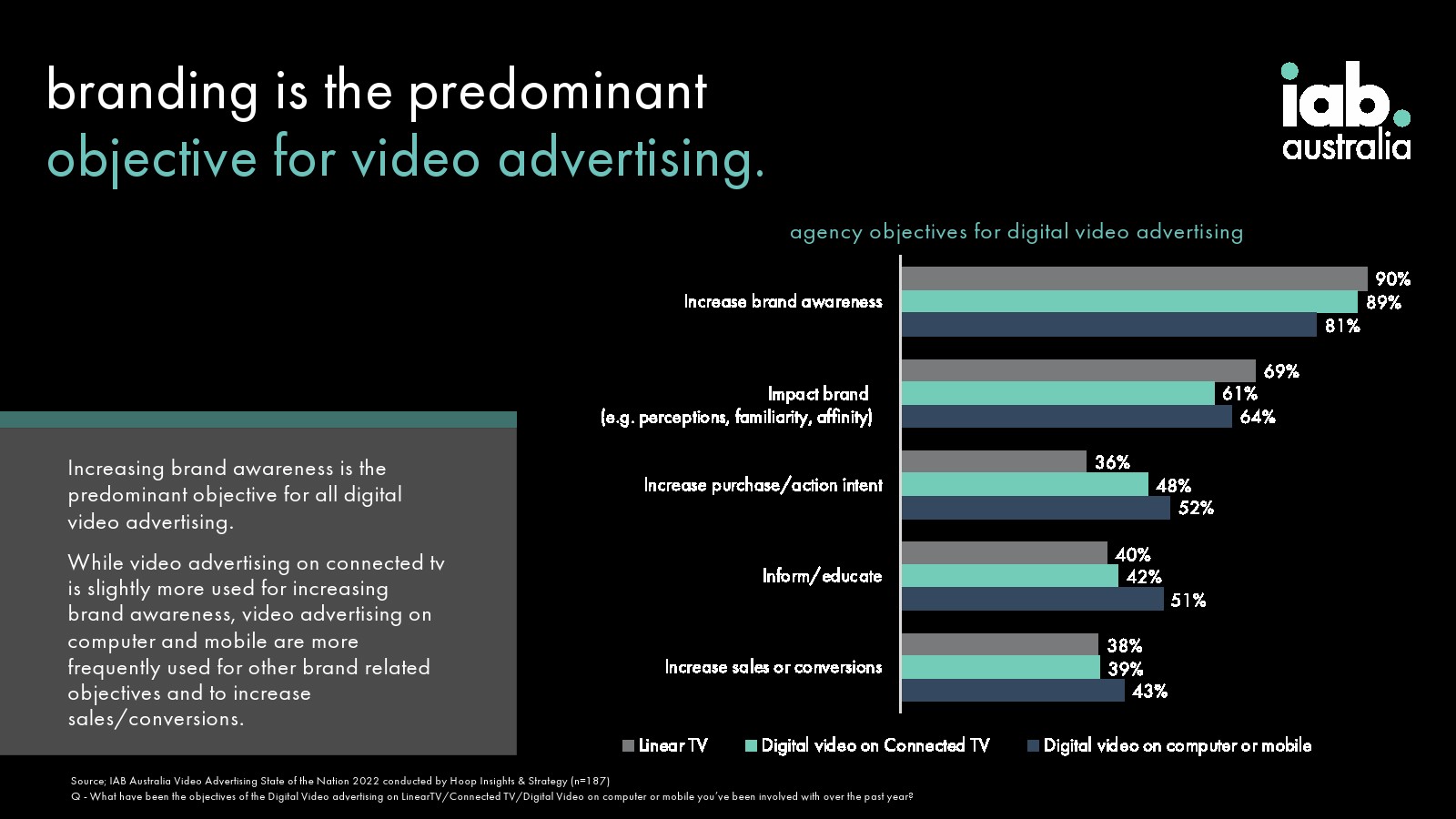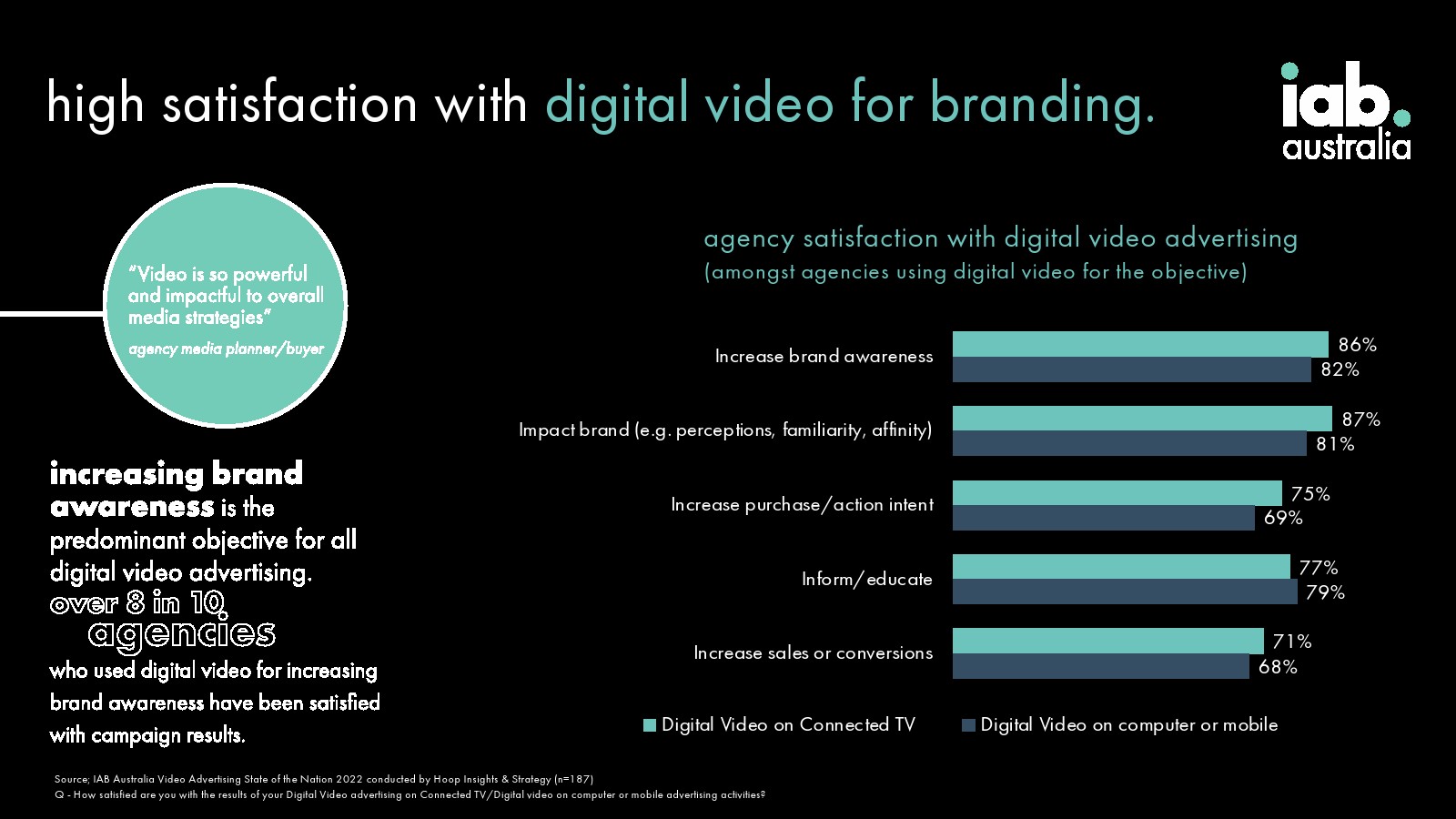 品牌建设仍然是数字视频广告活动的主要目标,代理商对实现品牌目标的数字视频非常满意。使用联网电视来提高品牌知名度与传统电视相当。