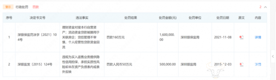 刘丛中离任后,深圳分行又因理财资金对接本行自营资产;流动资金贷款被挪用于关联房企;贷后管理不审慎,个人经营性贷款资金回流被深圳银保监局罚款160万元。而这两次受罚与刘丛中都没关系。