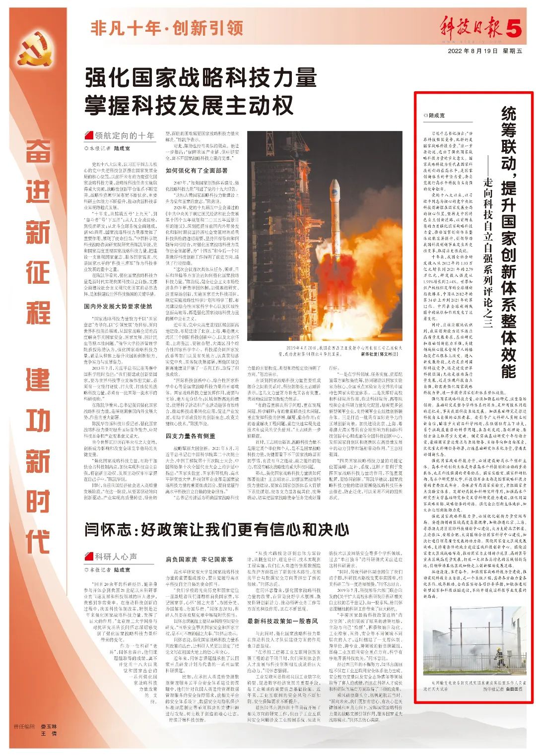 党和国家高度重视国家战略科技力量,把建设一支体现国家意志、服务国家需求、代表国家水平的“科技王牌军”作为科技事业发展的重中之重。