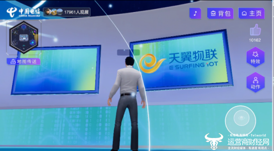 5G移动物联网时代,城市中的生活、出行是什么样子?大会期间,天翼物联运用5G+超高清+VR等创新技术,打造了充满科技感的5G车联之城、5G创新之城、5G智能之城、5G感知之城,参观者只需点击手机屏幕便可进行沉浸式元宇宙观展,体验5G时代“新生活”。